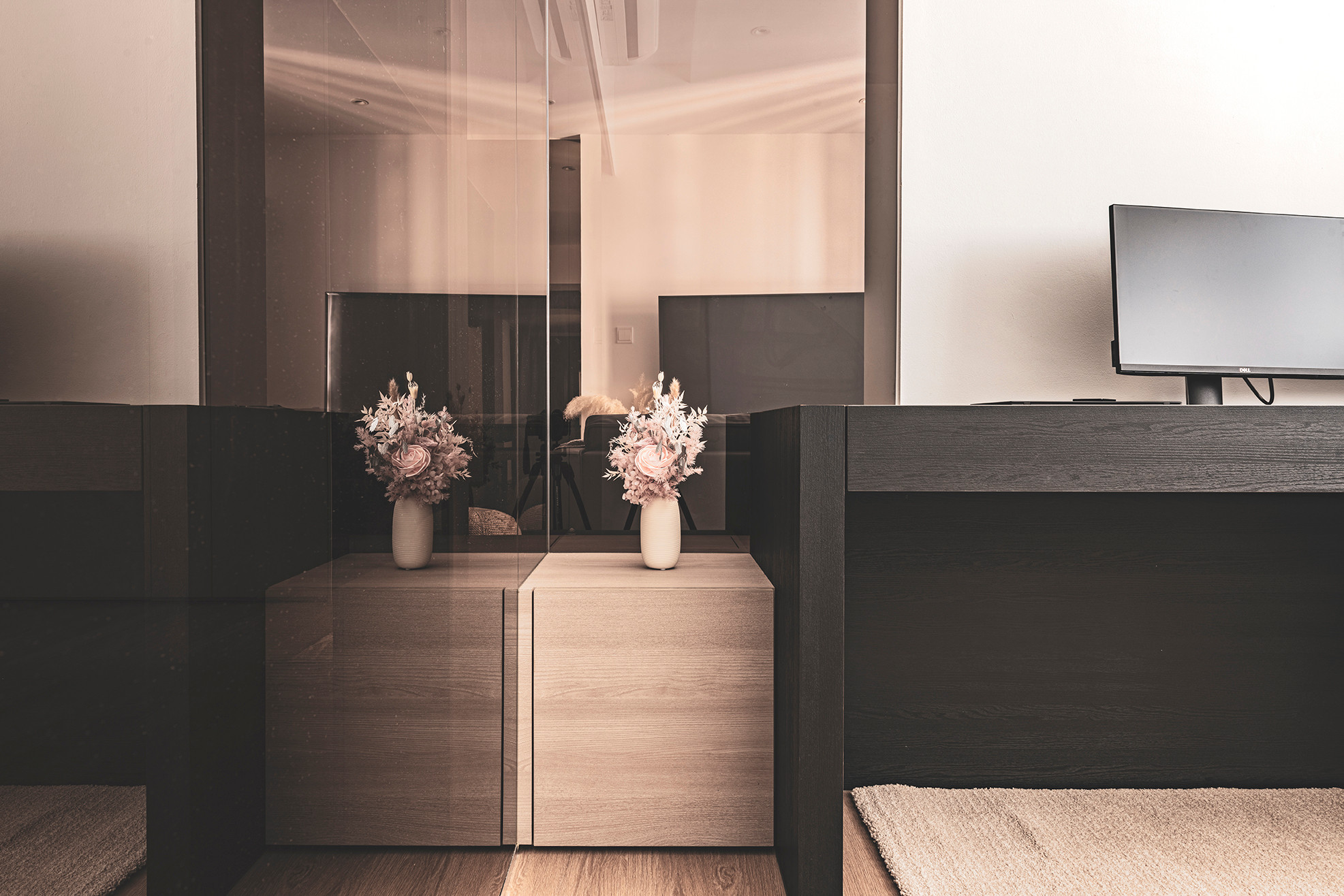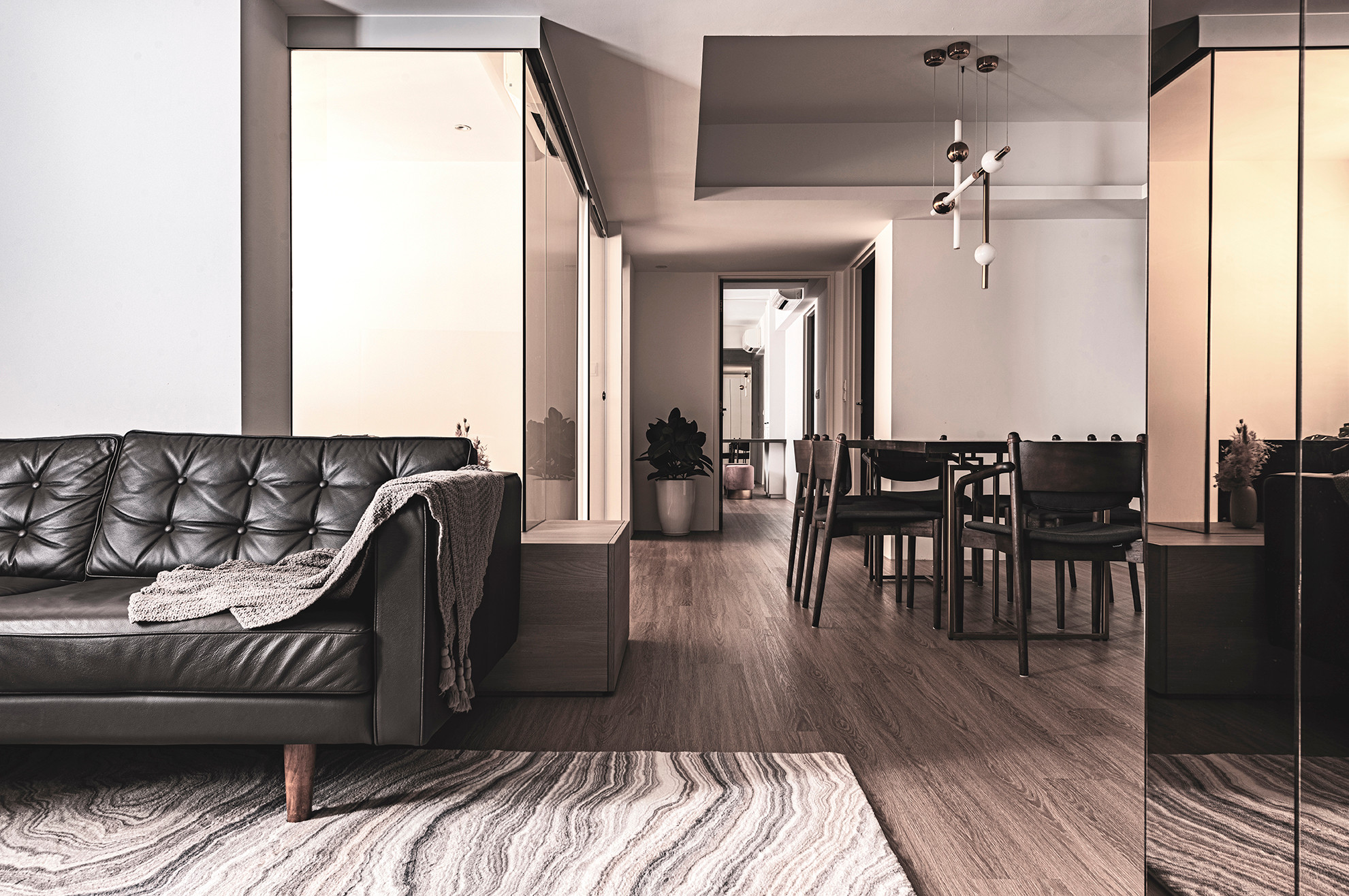 With an open layout and extensive glass materials, this apartment feels much more spacious than it really is!
