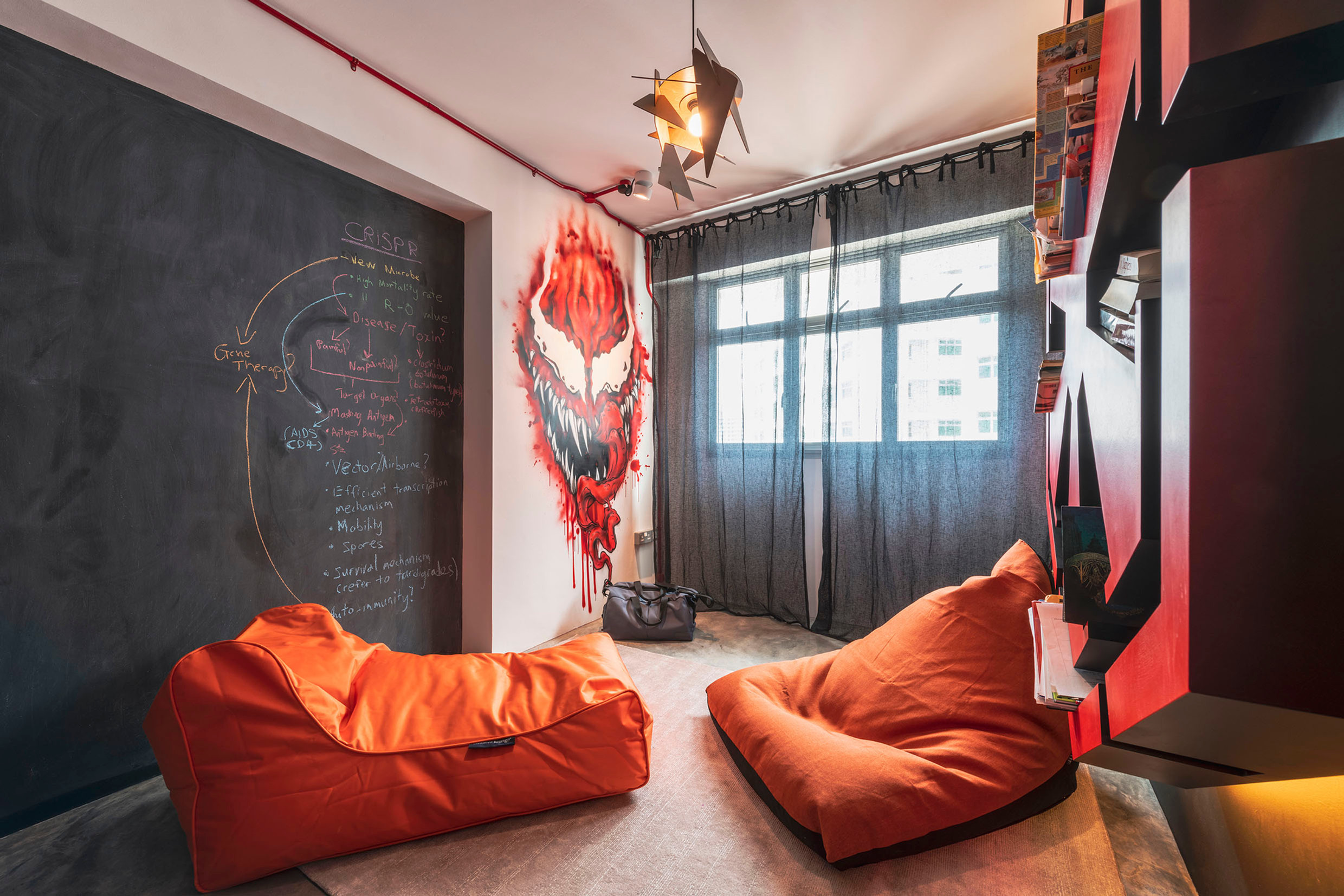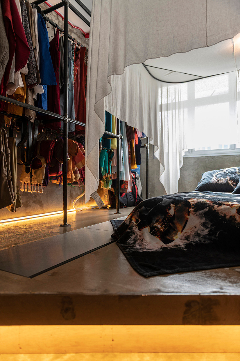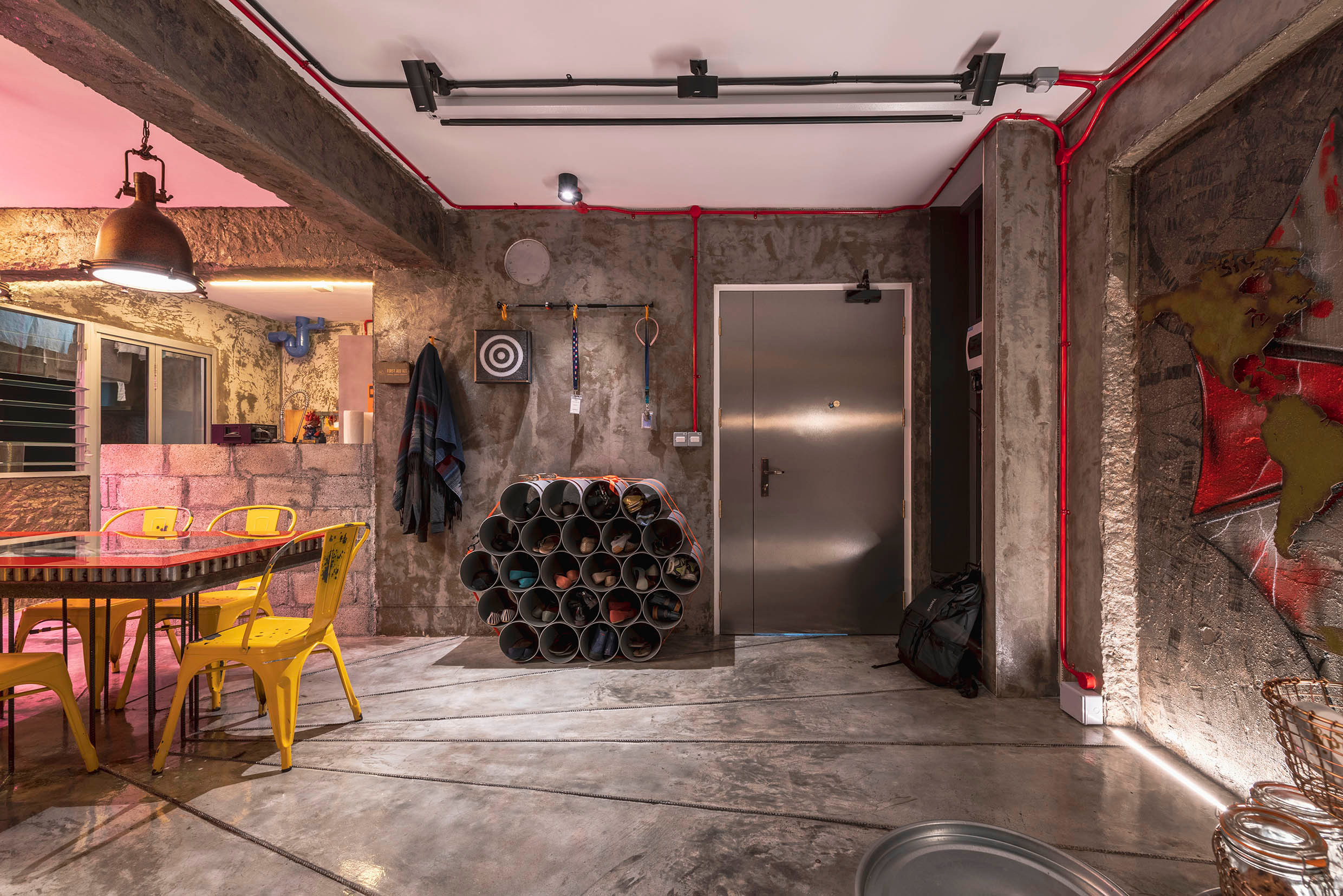 This 1,001 sq ft, four-room HDB flat in Canberra has been transformed into an unconventional home that boldly embraces a post-apocalyptic industrial aesthetic while maintaining a strong commitment to sustainability. The vision was to create a space that is rugged, raw, and functional — a home that tells a story of resilience and ingenuity while celebrating environmental consciousness.