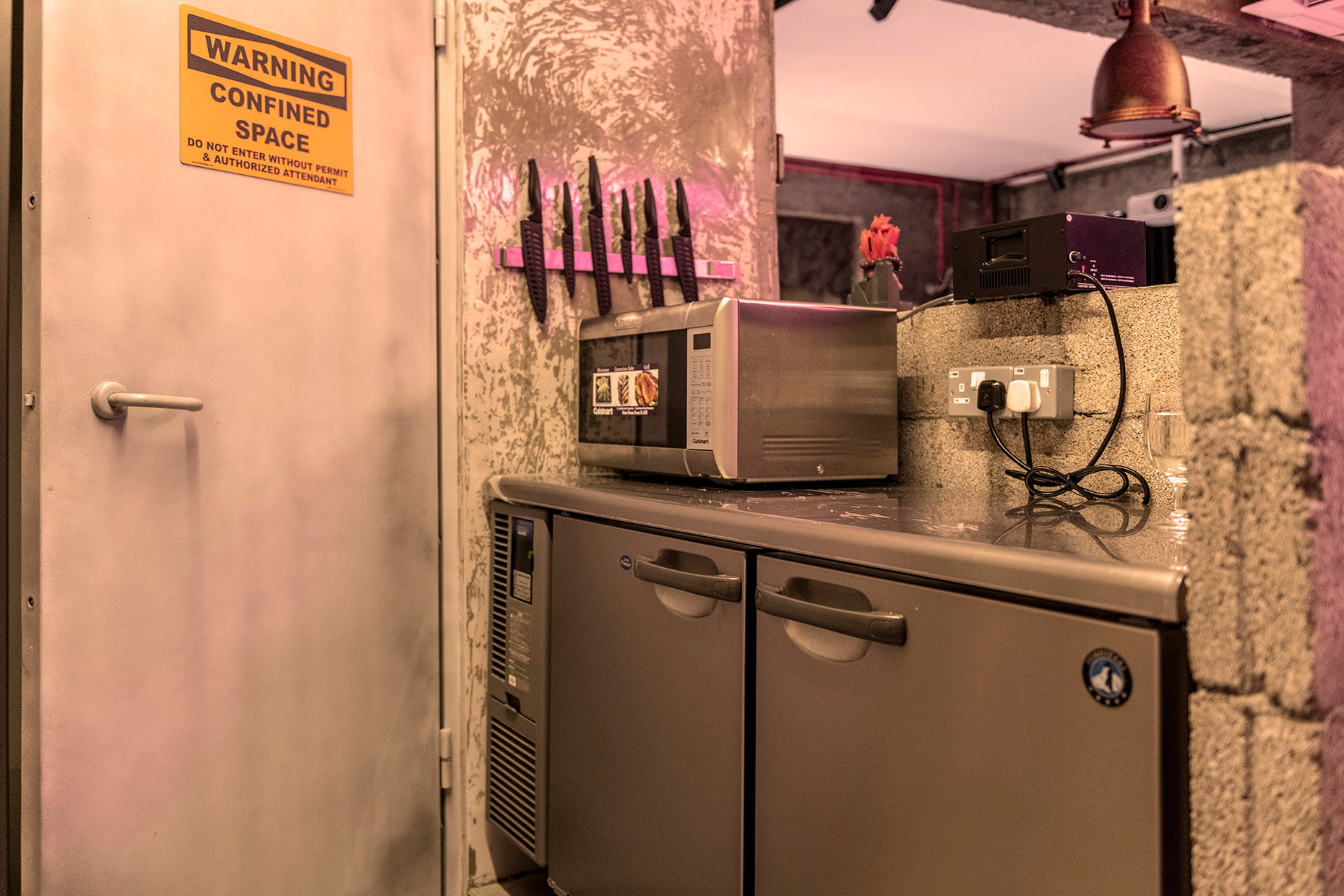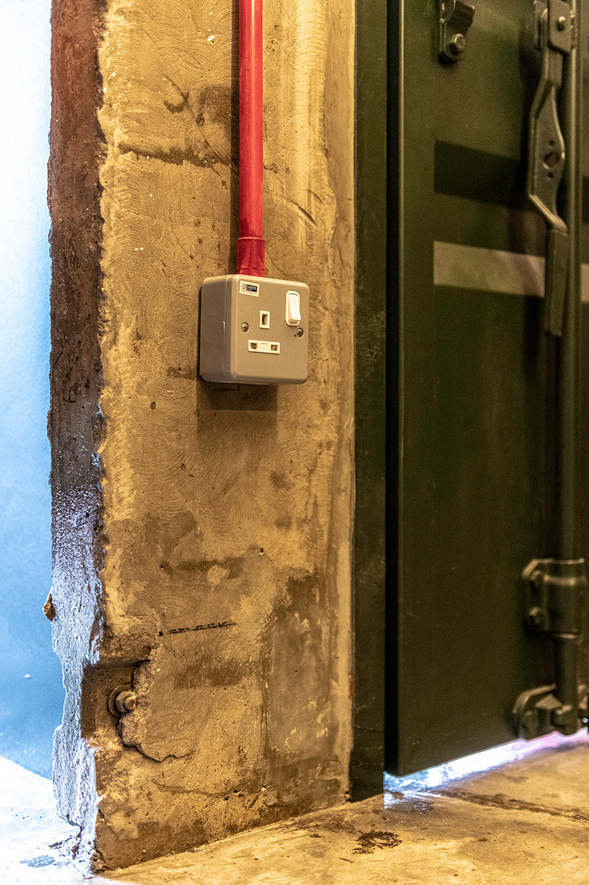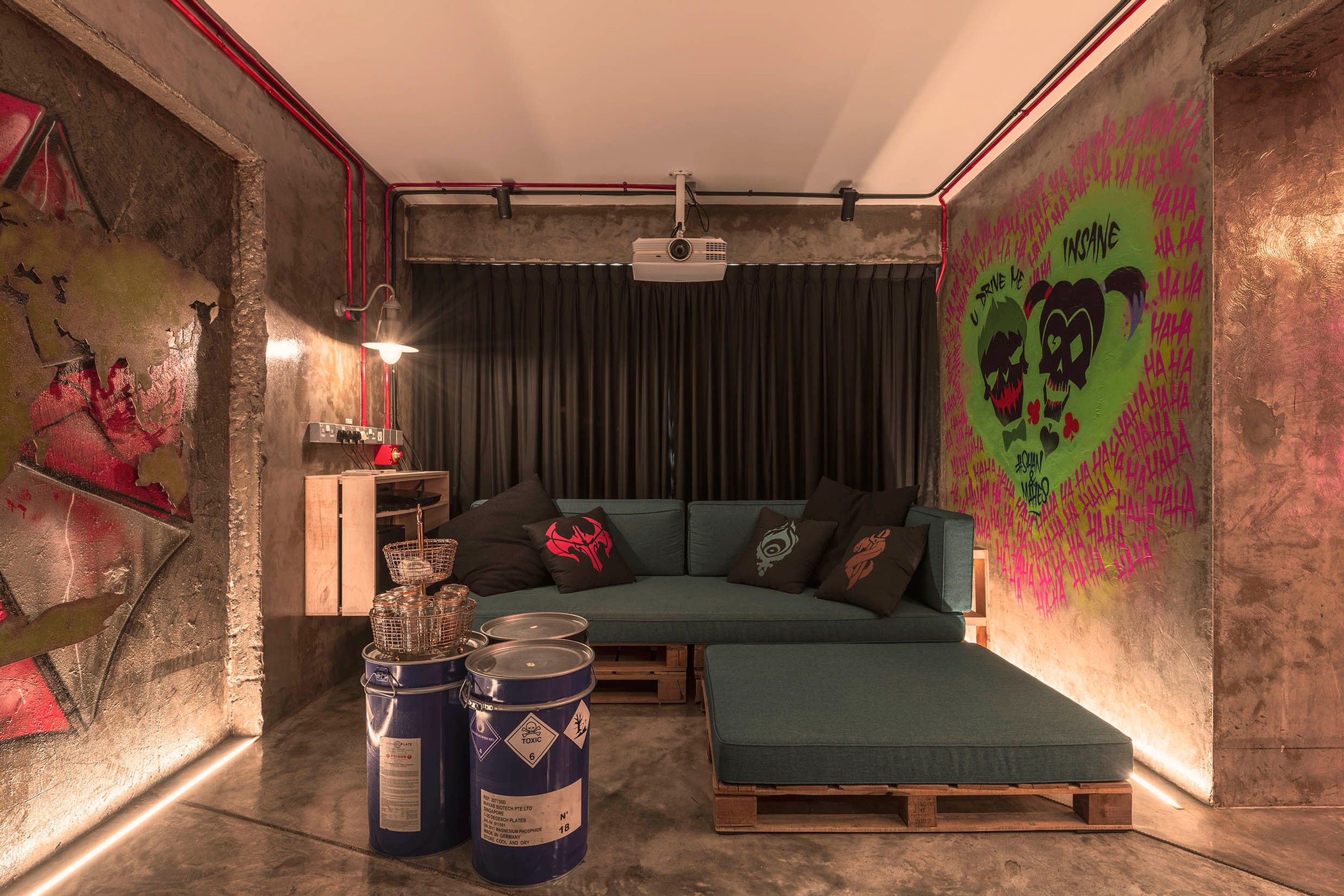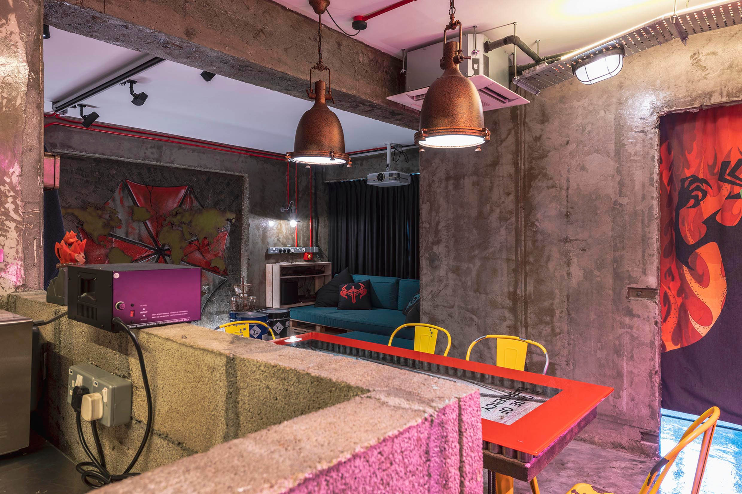 Unlike typical interiors that aim to hide structural or mechanical elements, this home showcases them as design features. The stainless-steel-clad front door, grey concrete walls and floors, and cinderblock accents immediately set a utilitarian, bunker-like tone. Exposed pipes, air-conditioning ducts, and oversized industrial switches further reinforce the post-apocalyptic narrative, giving the home a distinctive, grunge-inspired personality that is both edgy and immersive.
