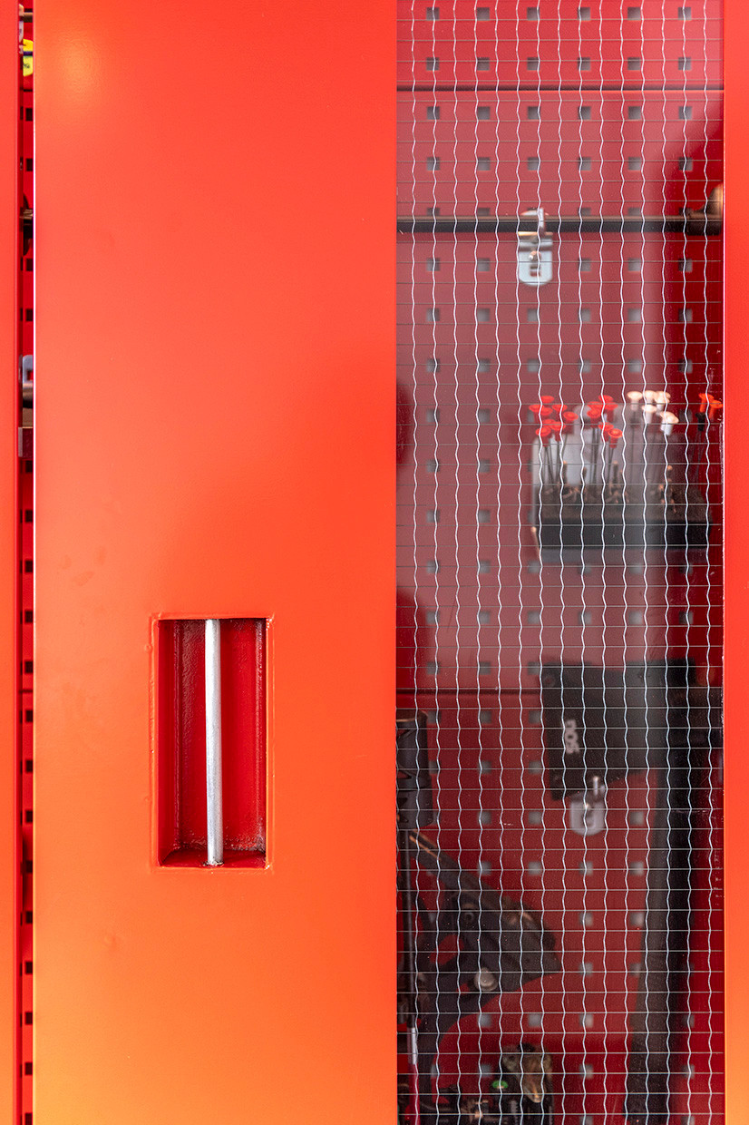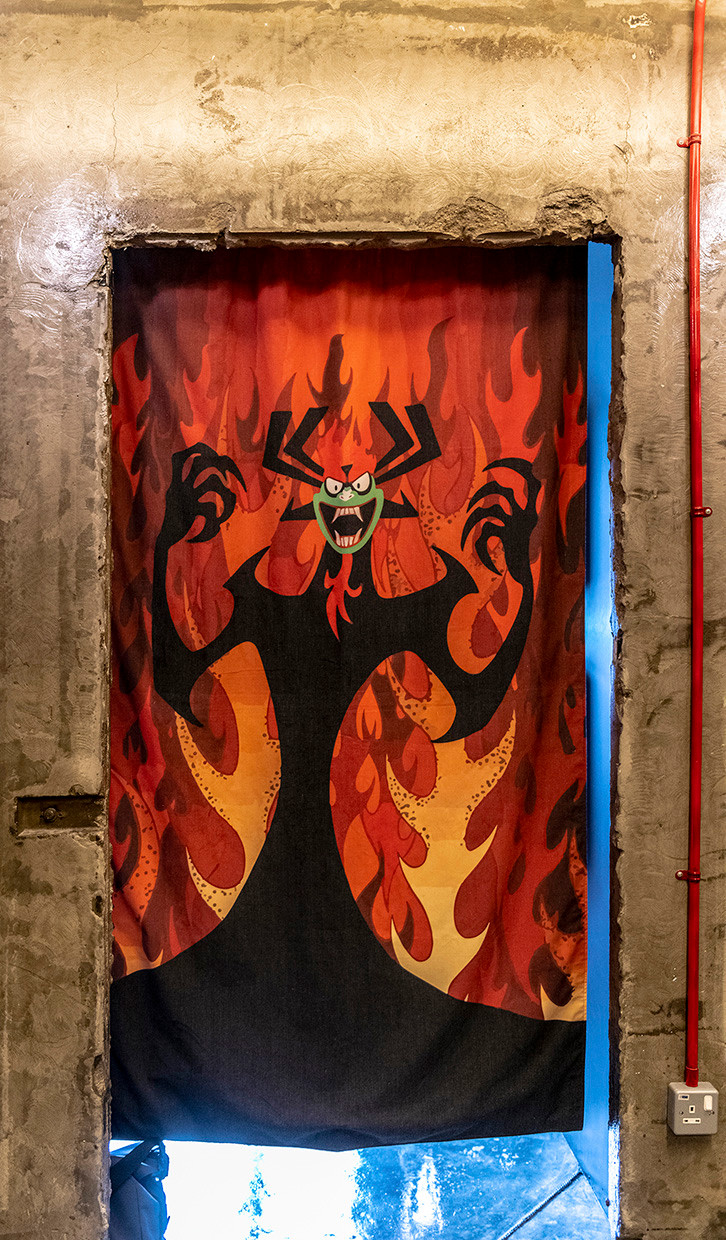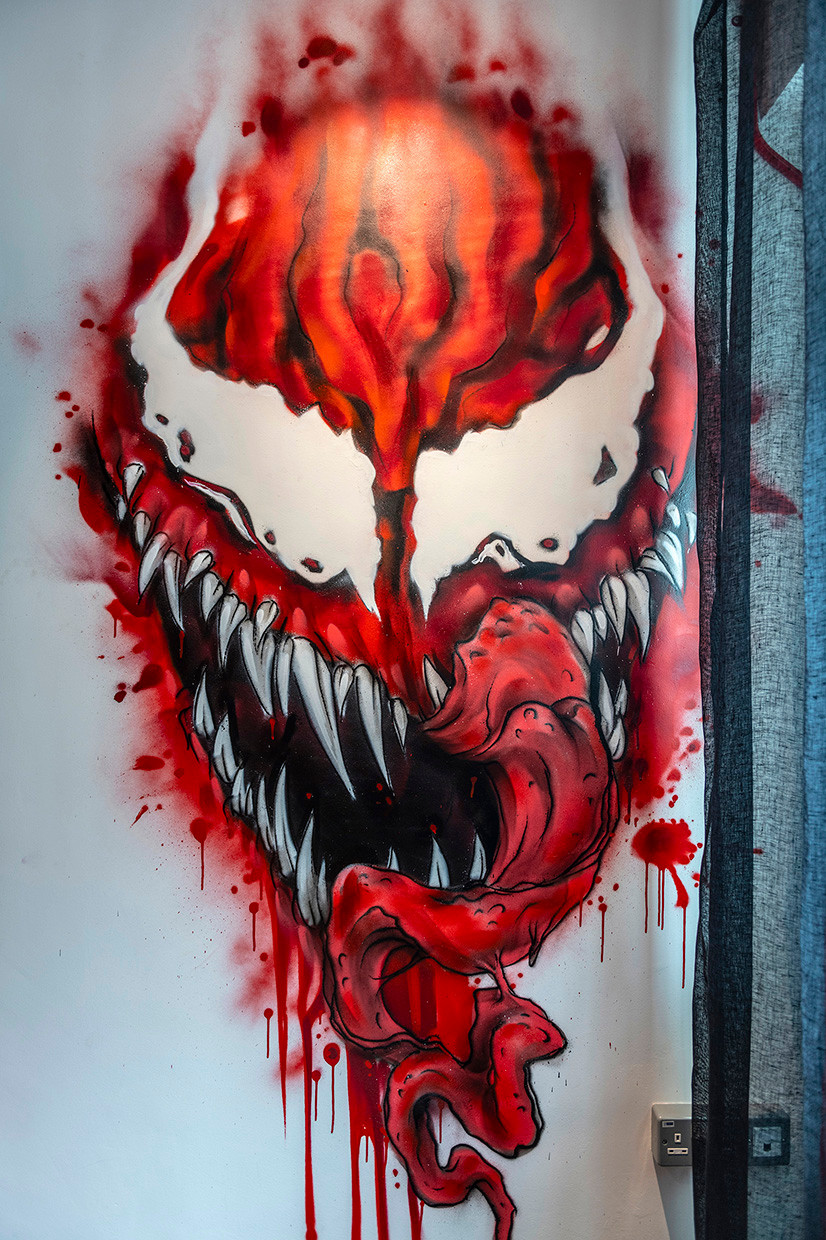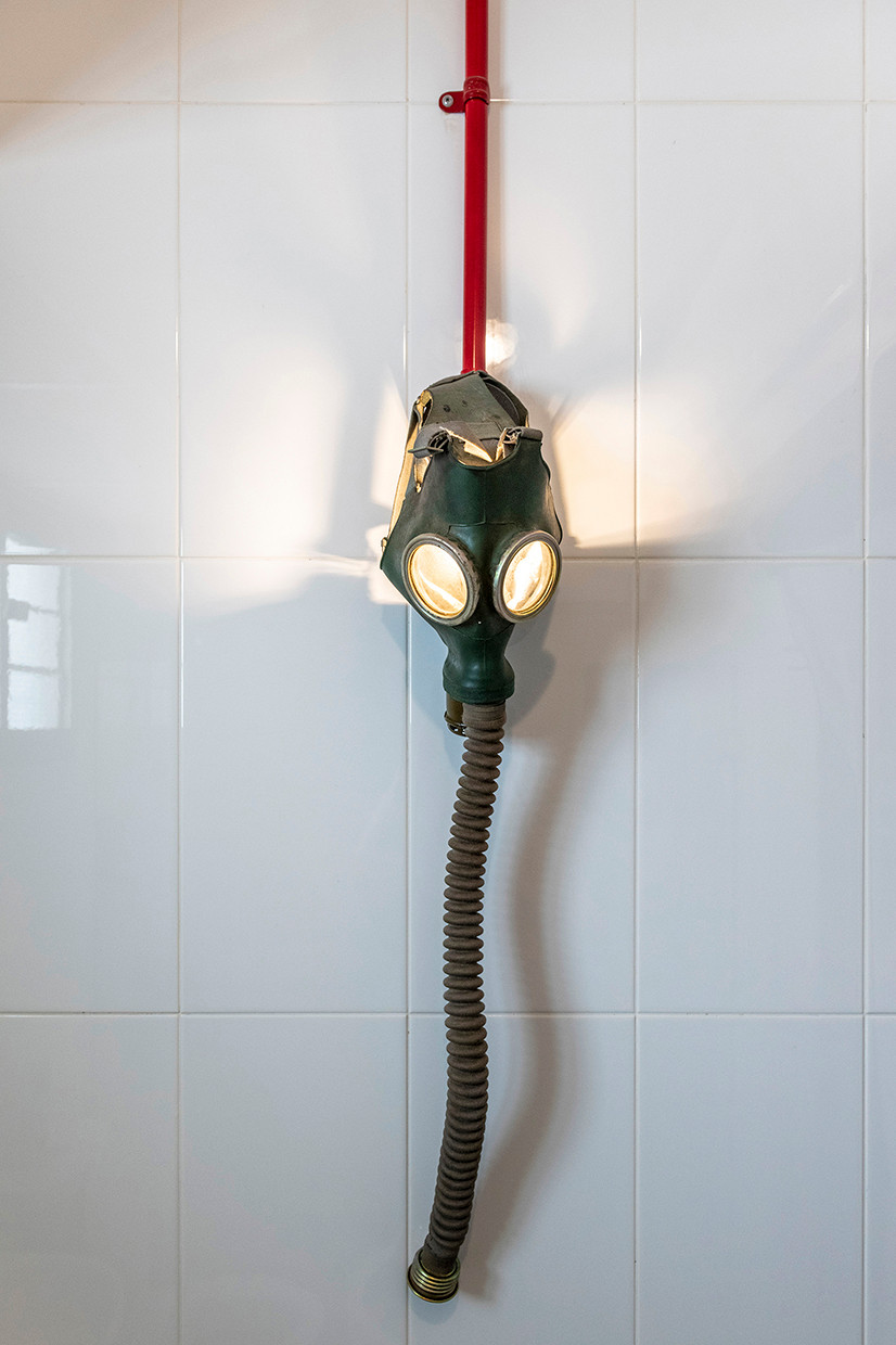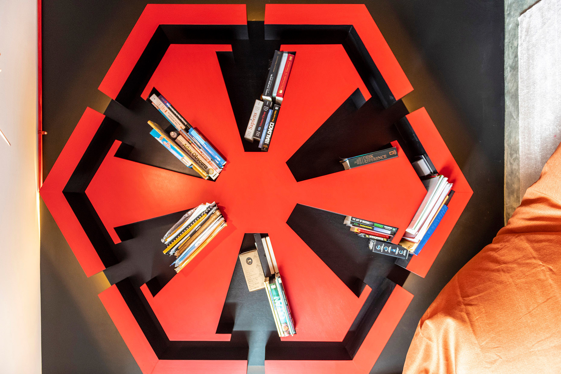 Unlike typical interiors that aim to hide structural or mechanical elements, this home showcases them as design features. The stainless-steel-clad front door, grey concrete walls and floors, and cinderblock accents immediately set a utilitarian, bunker-like tone. Exposed pipes, air-conditioning ducts, and oversized industrial switches further reinforce the post-apocalyptic narrative, giving the home a distinctive, grunge-inspired personality that is both edgy and immersive.