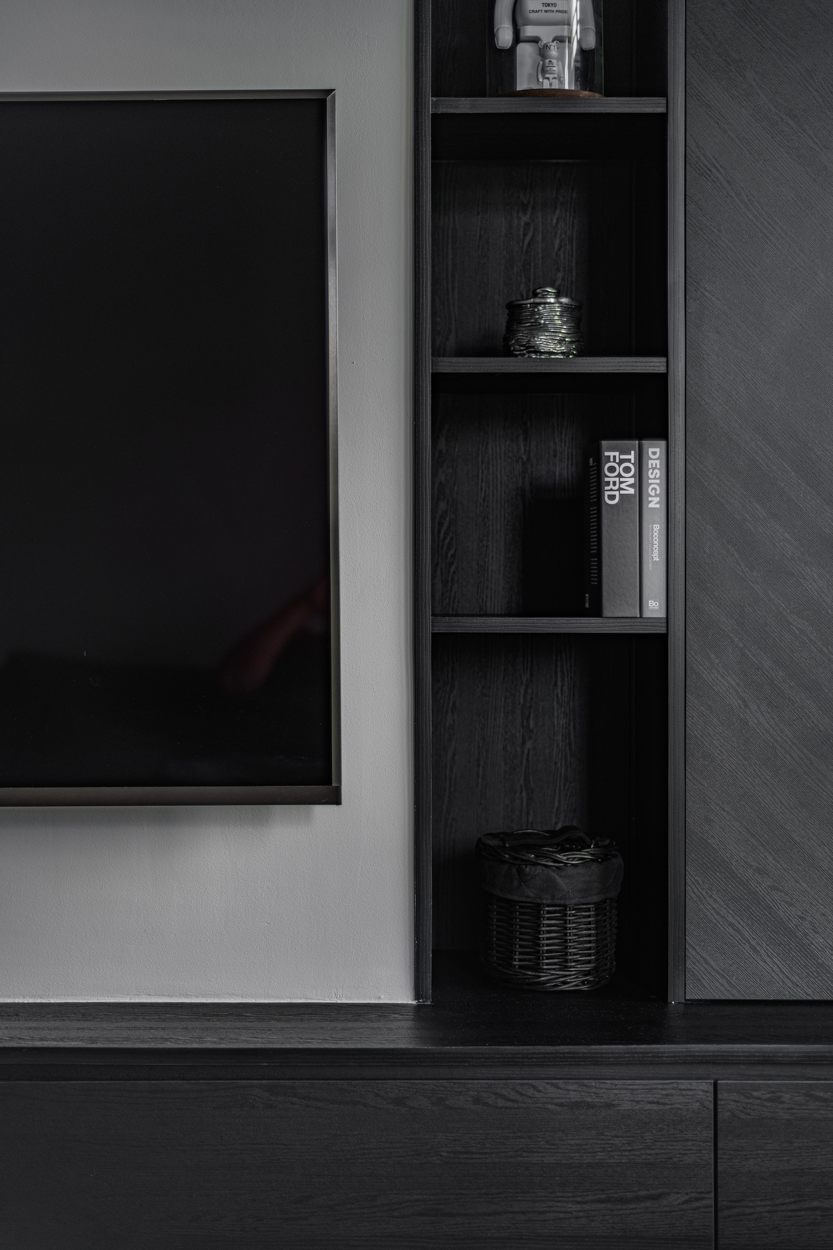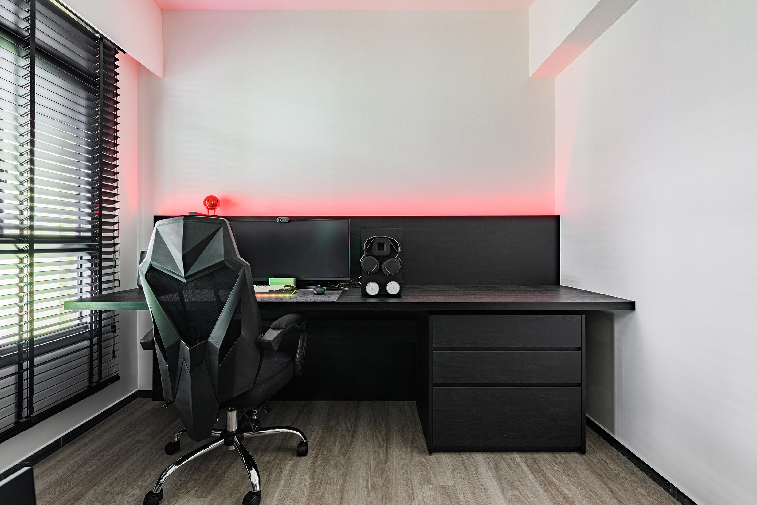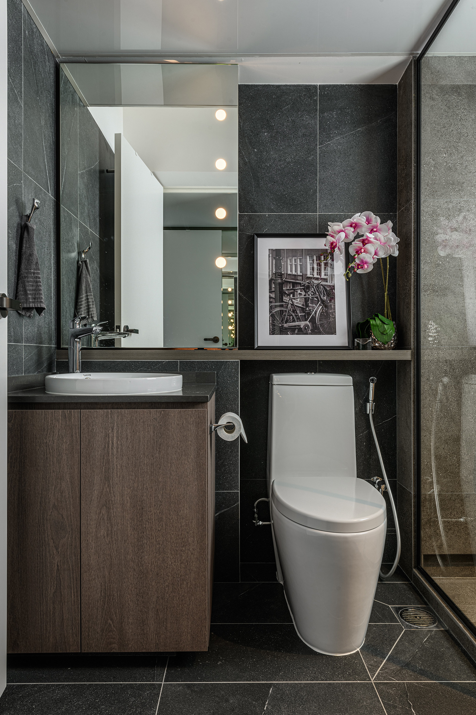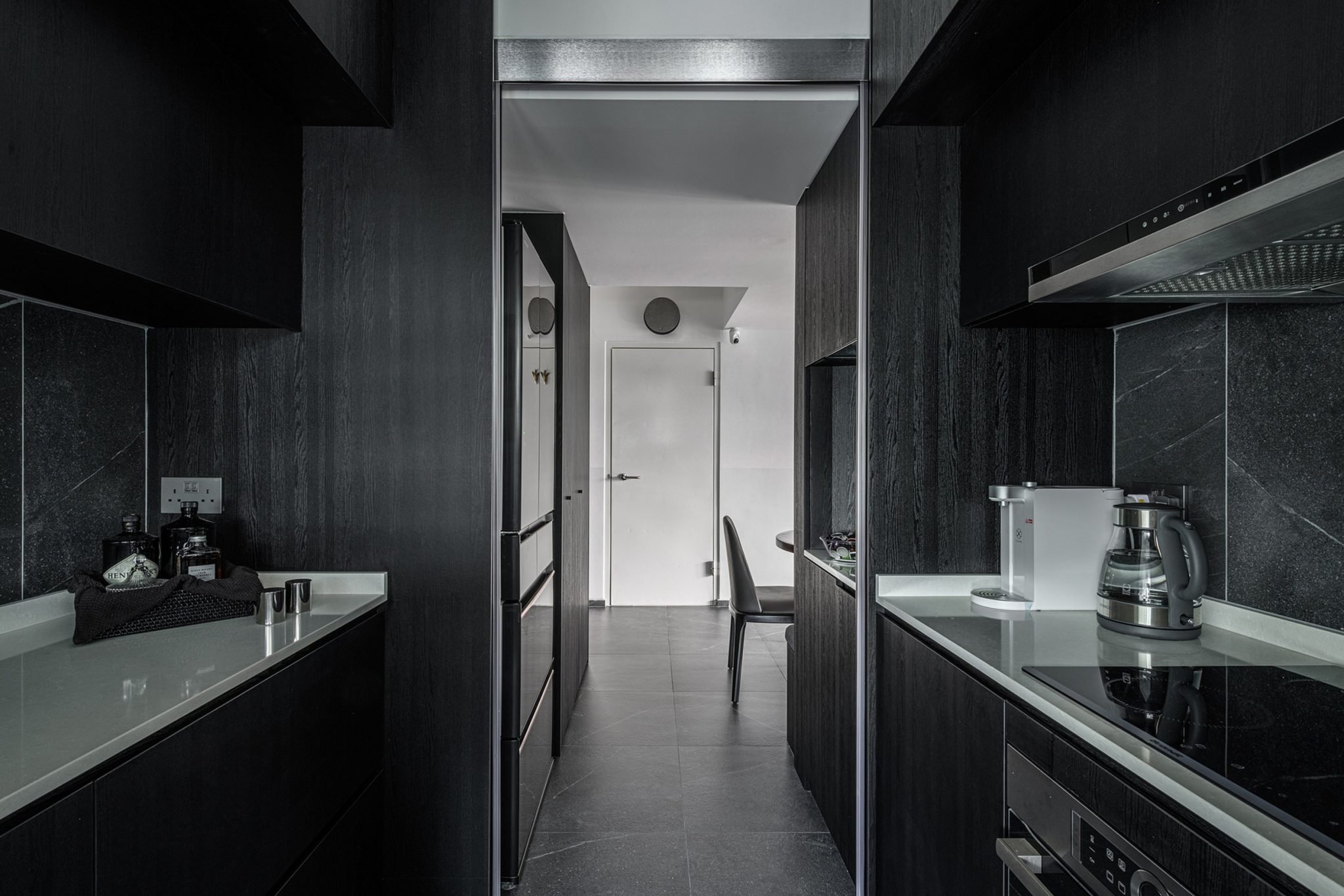 Many cannot believe that this is a 900 sq feet apartment at first glance but after the house tour you will realize that the kitchen area was deliberately reduced to increase the size of the living/ dining area. All part of the client’s brief, as they do not do much cooking and prefer a bigger living area to entertain guests.