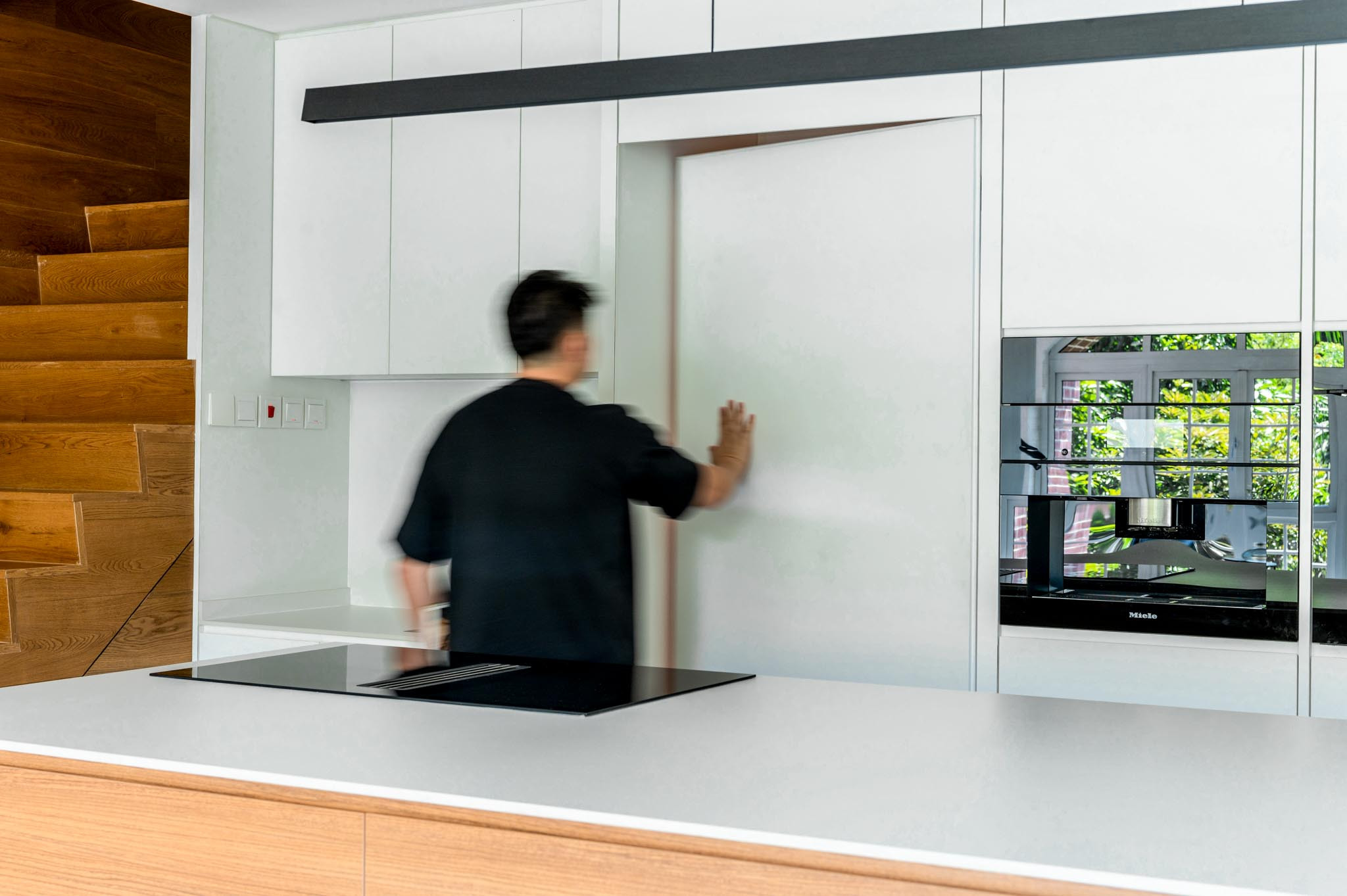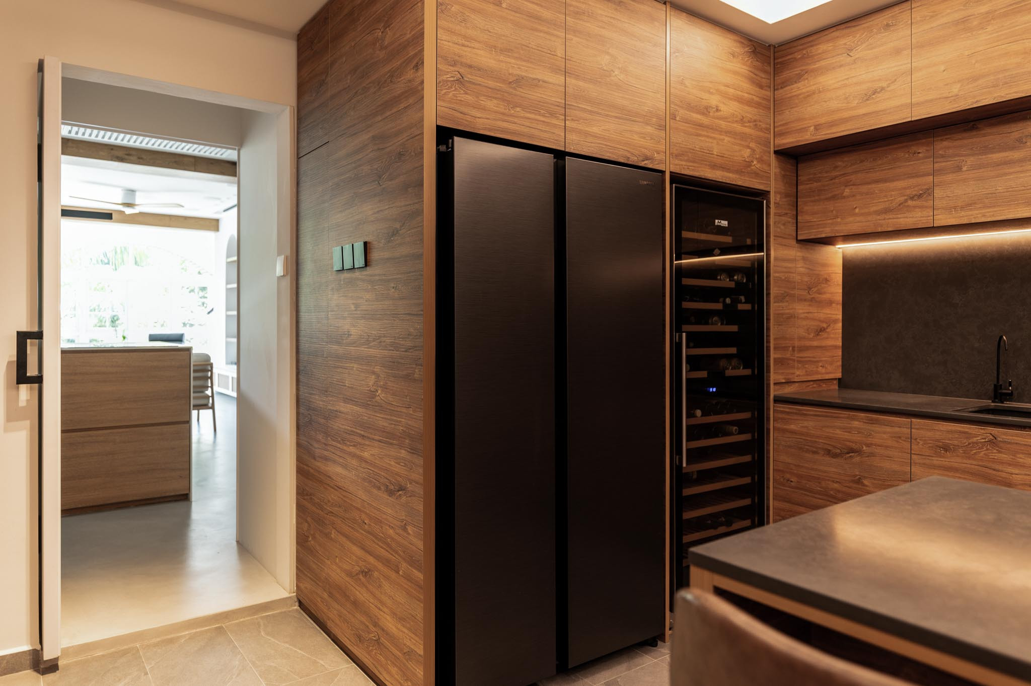 The design philosophy extends to the cabinetry—or the deliberate lack thereof. Minimal cabinetry has been incorporated into the condo’s design to maximise space and allow the architectural elements to shine. This approach encourages a clutter-free environment, where the family can truly appreciate the openness and fluidity of their home. By focusing on essential storage only, the design emphasises quality over quantity, ensuring that every piece serves a purpose without overwhelming the space.