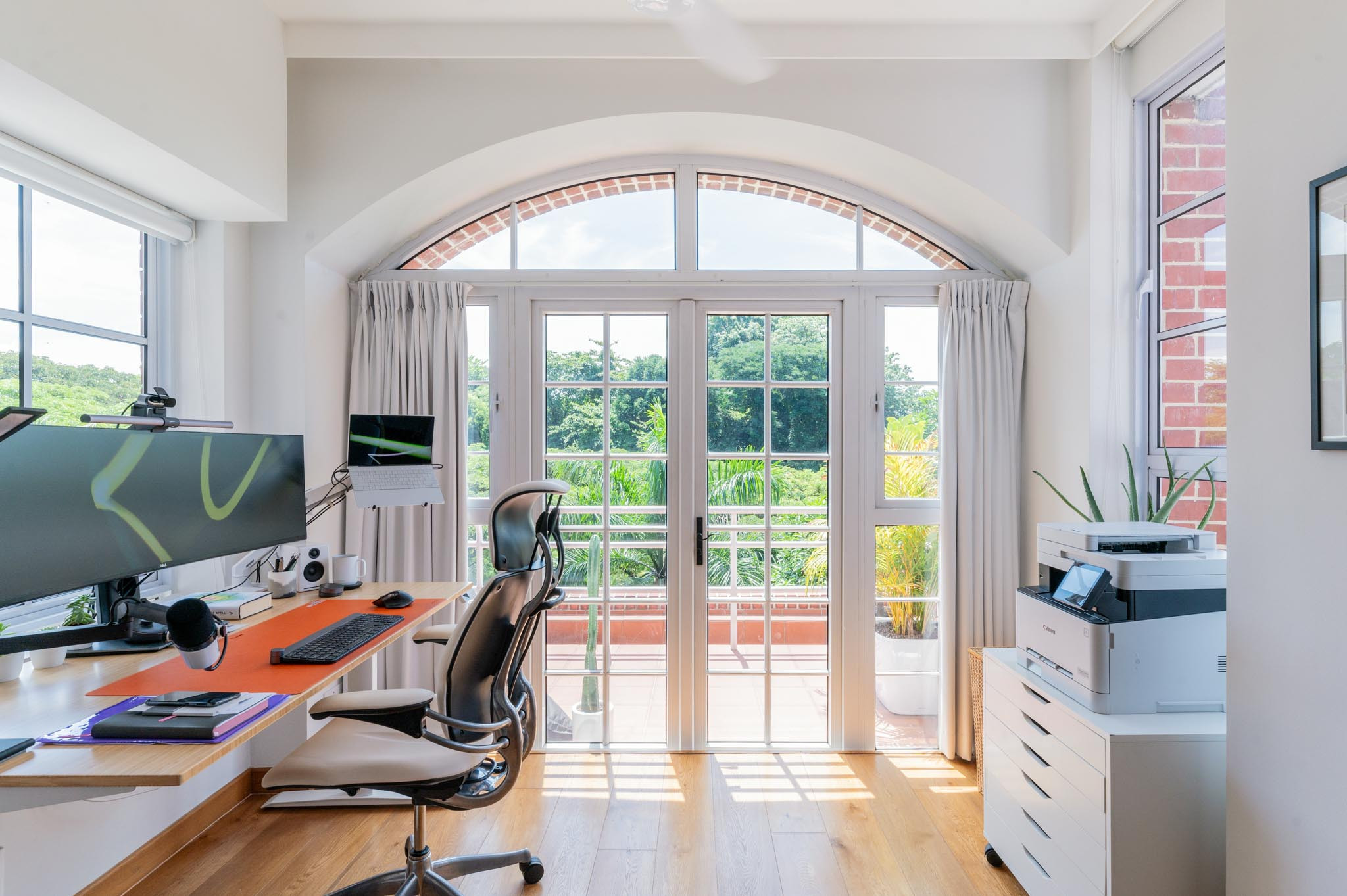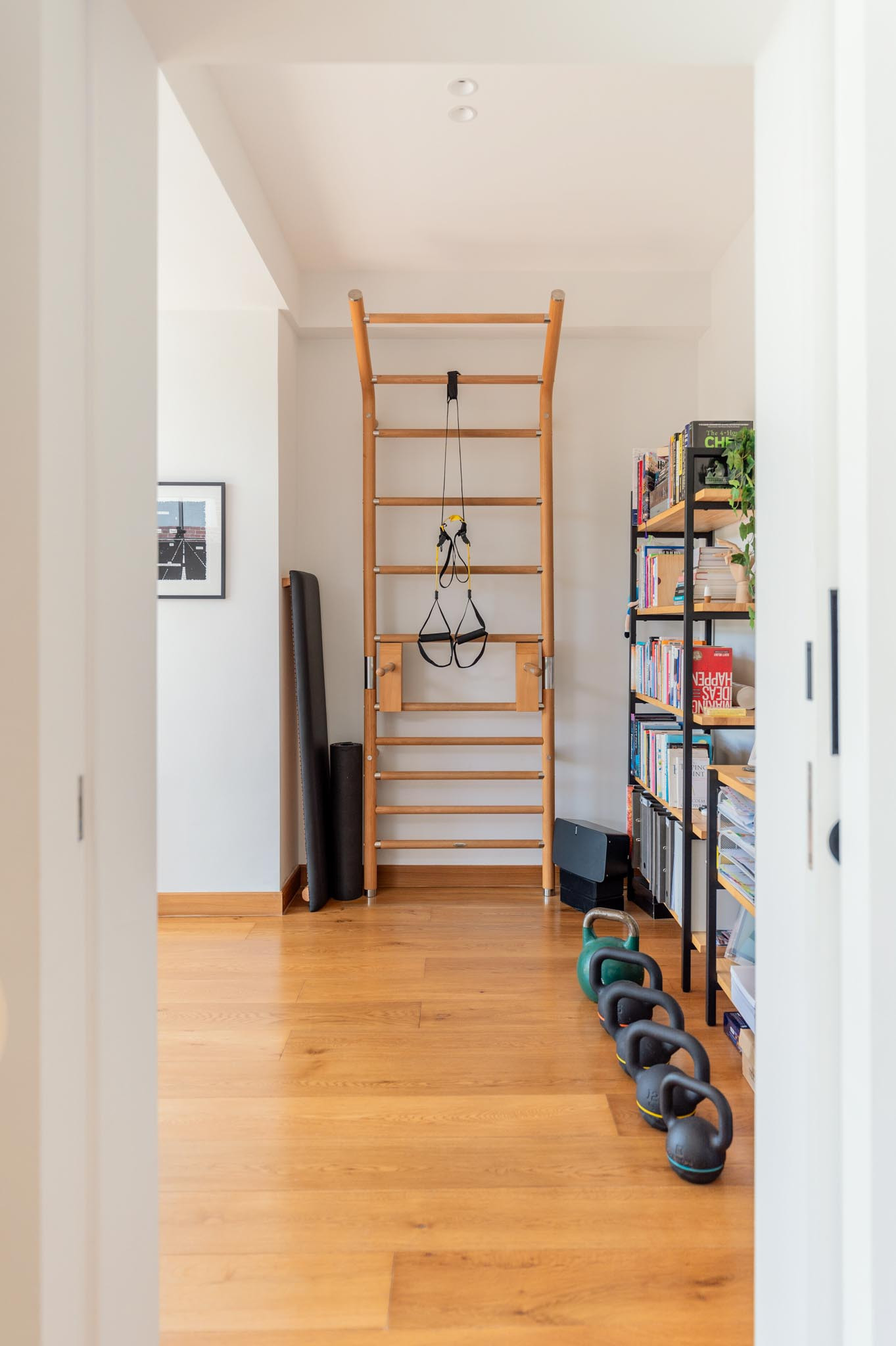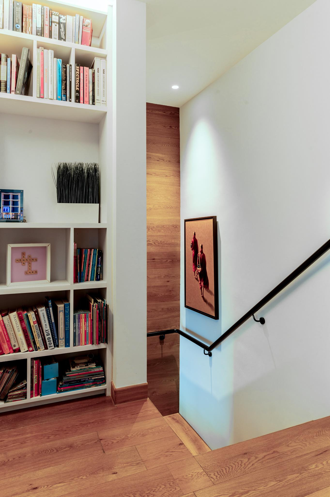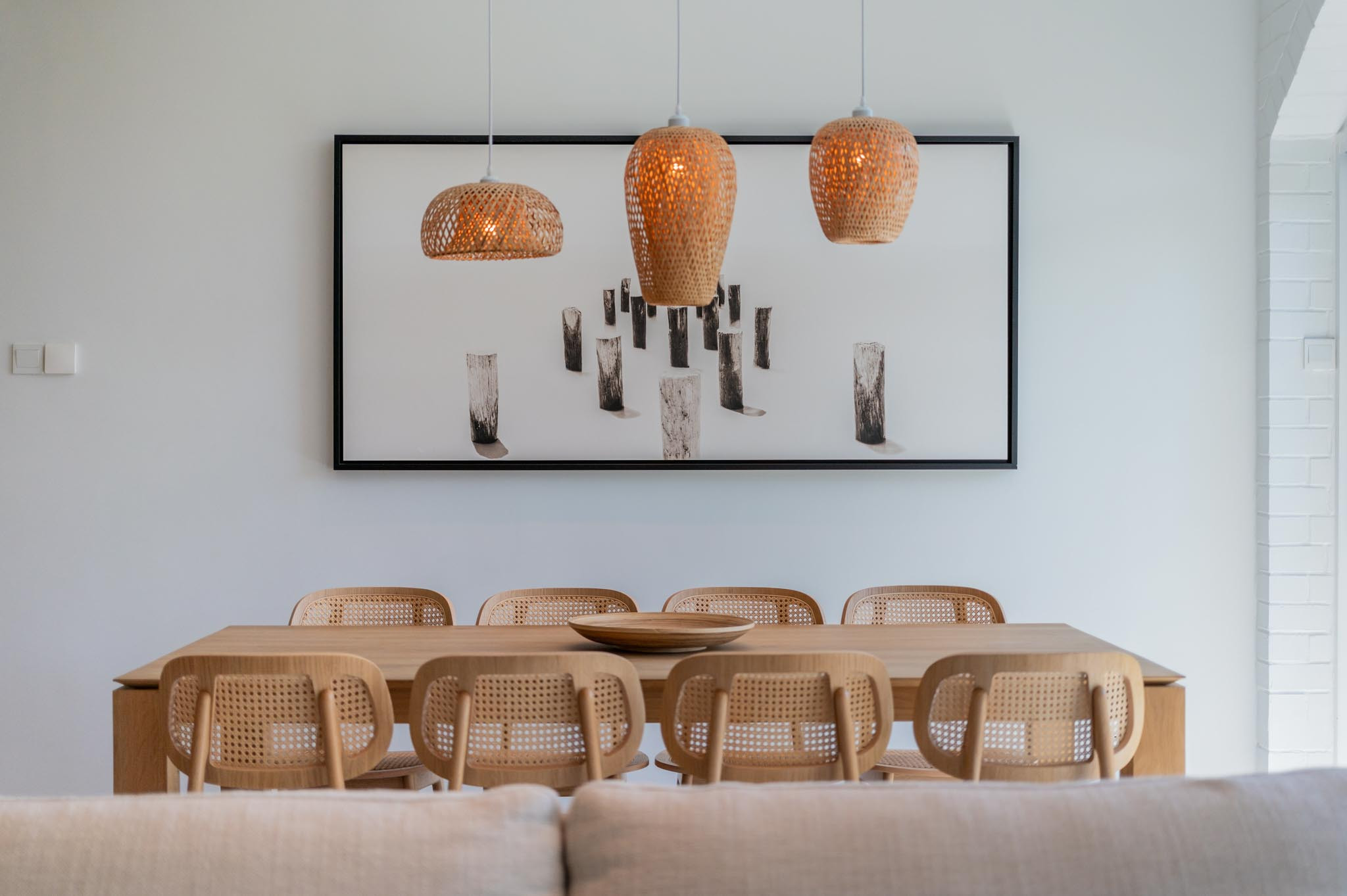 The living space in this condo is a testament to the beauty of repurposing and blending traditional elements with modern design. The centrepiece of this area is a stunning, vintage door, reimagined and reused as a focal point. This door not only adds character but also tells a story, reflecting the family’s appreciation for heritage and timeless beauty. The vintage piece stands as a bold statement against the clean lines and minimalist approach that defines the rest of the space.