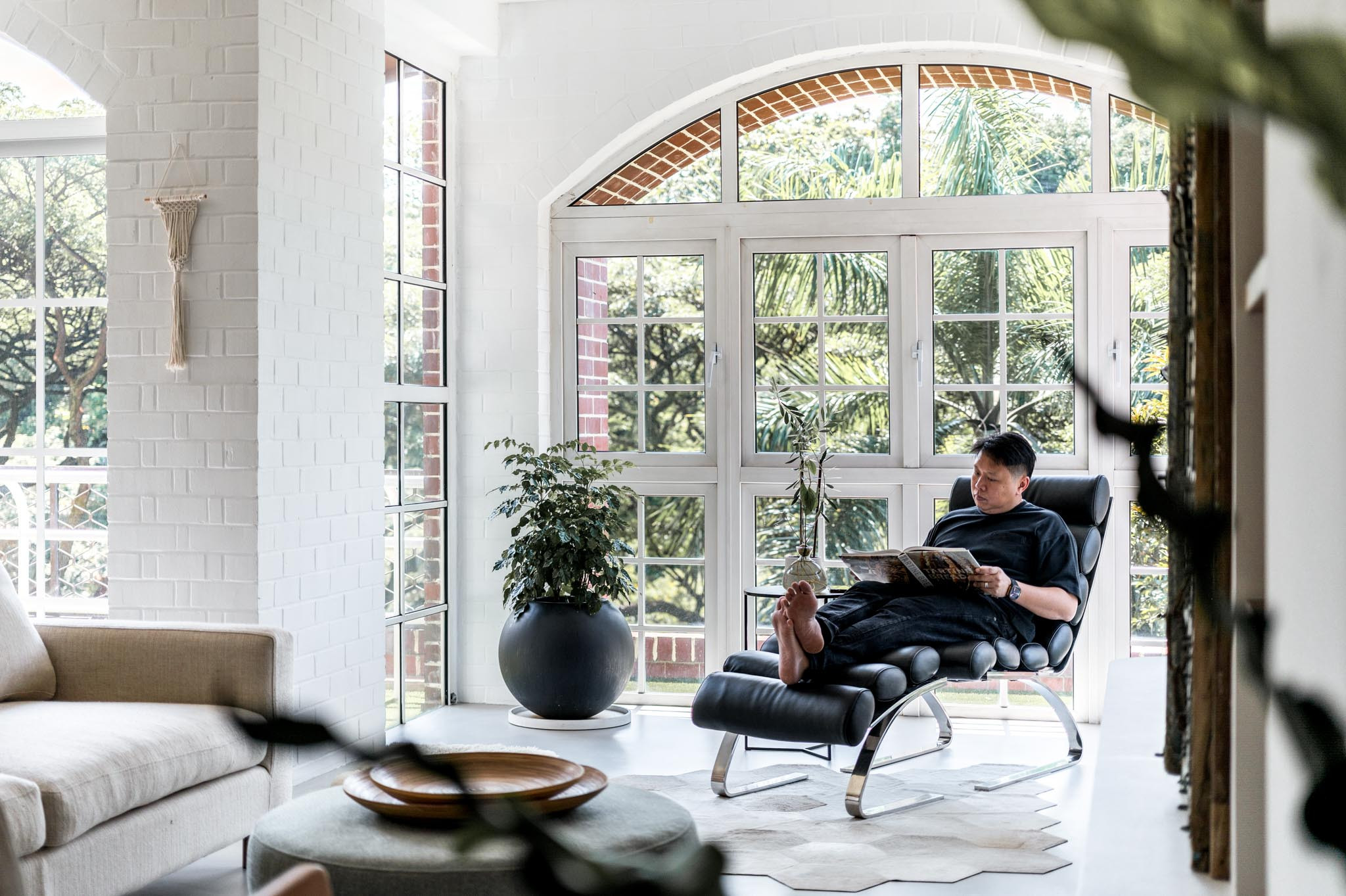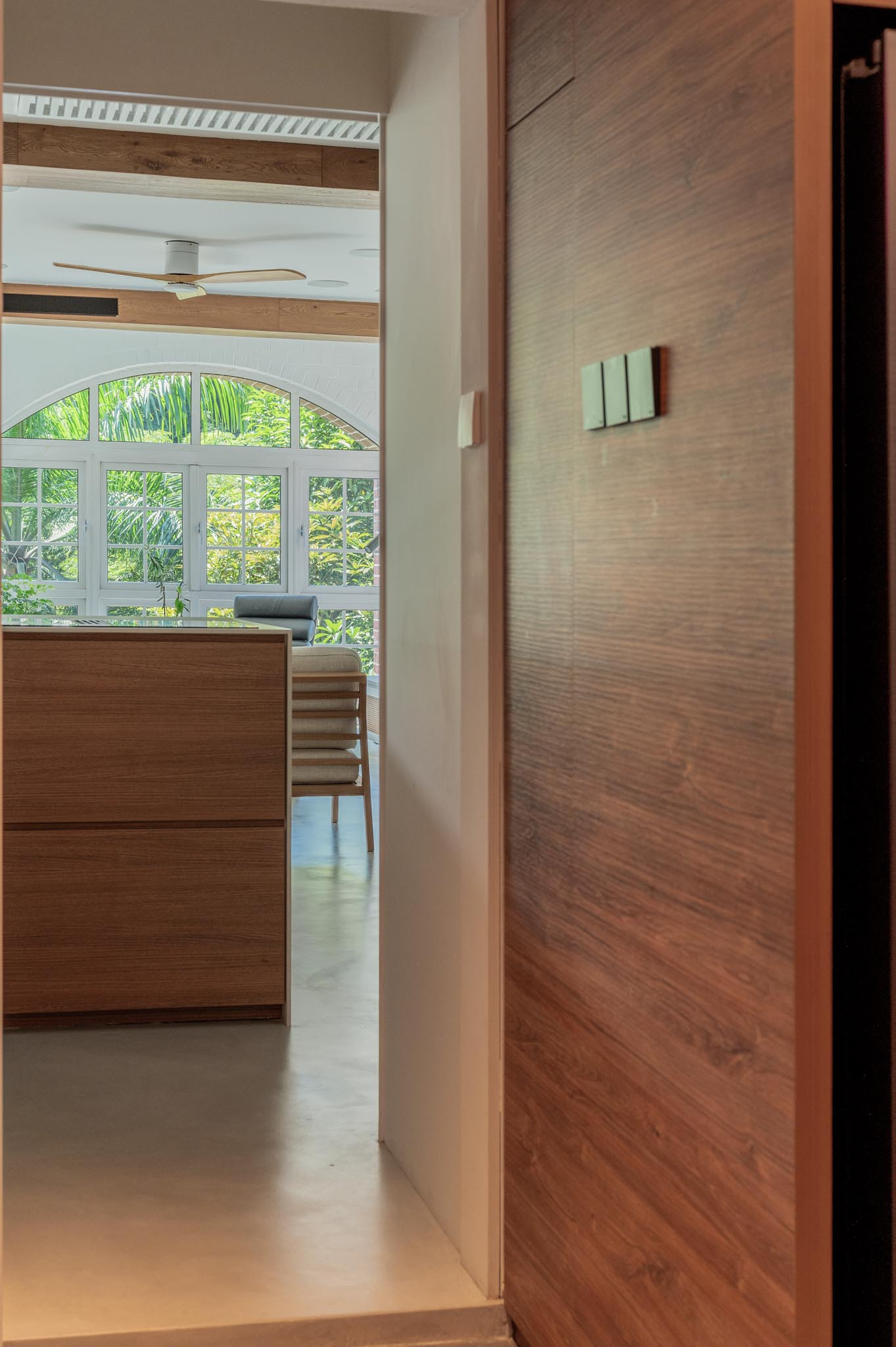In conclusion, this Mount Faber condo is a masterclass in balancing heritage with modernity. By reusing a vintage door as the focal point, utilising micro-cement and engineered wood flooring, and opting for minimal cabinetry, the design not only enhances the beauty of the space but also creates a functional, comfortable home. The inclusion of a sauna in the master bathroom further elevates the living experience, making this condo a true oasis amidst the verdant surroundings of Mount Faber.