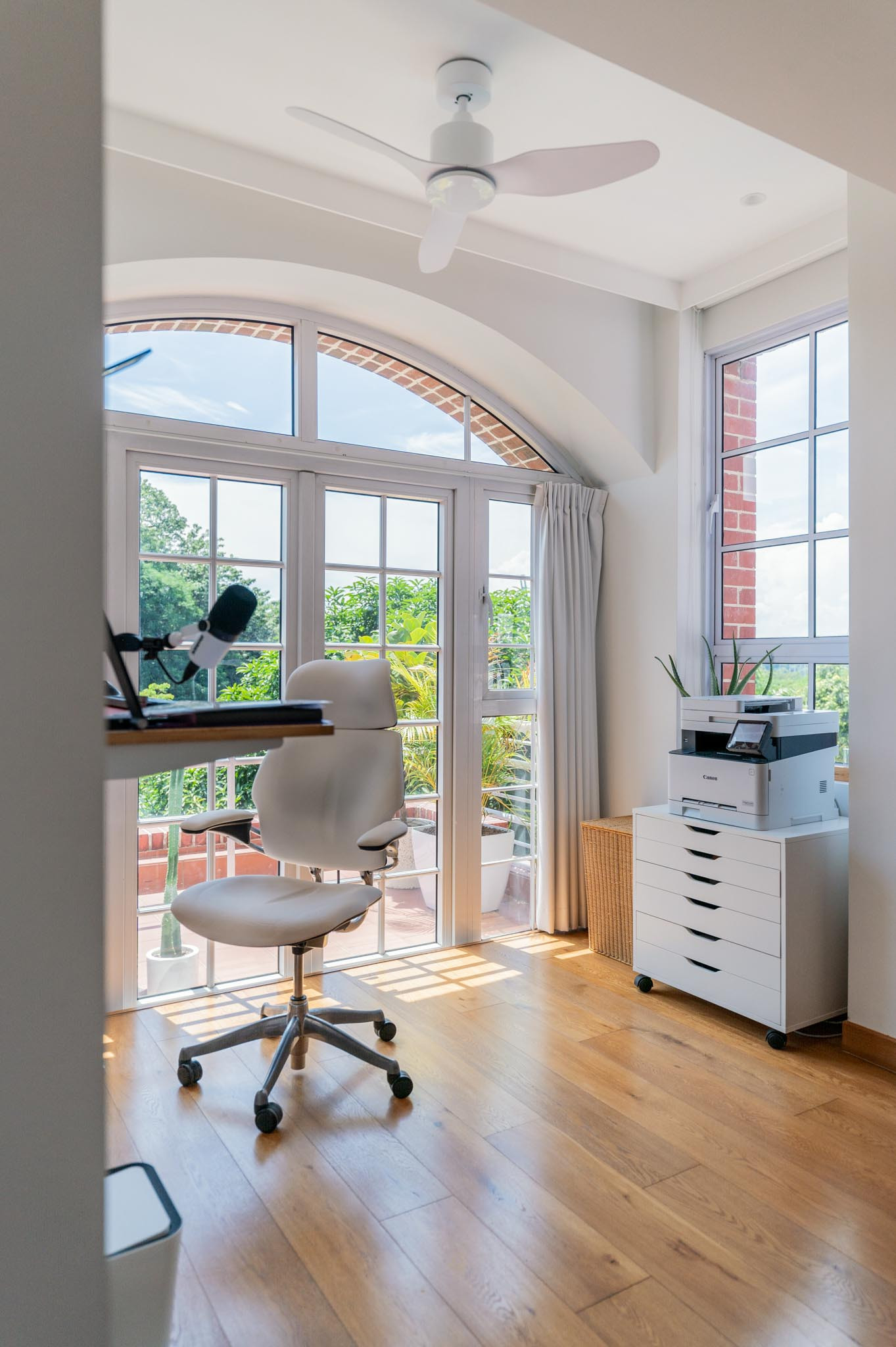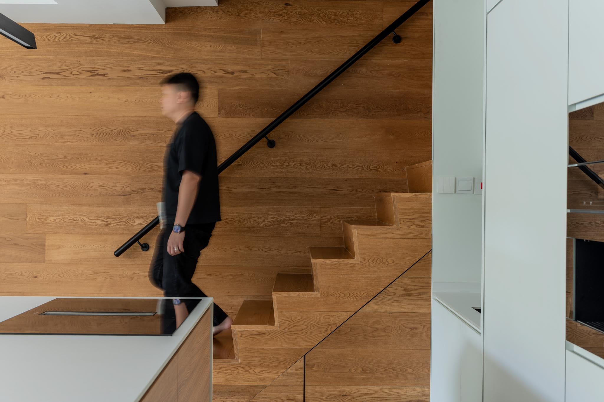 As one ascends to the upper levels of the condo, the flooring transitions to engineered wood, selected for both its aesthetic appeal and practicality. The warmth of the wood infuses the stairway and rooms with a cozy ambiance, creating a welcoming atmosphere that invites relaxation. Engineered wood is also known for its stability and resistance to humidity, making it an ideal choice for Singapore’s tropical climate.