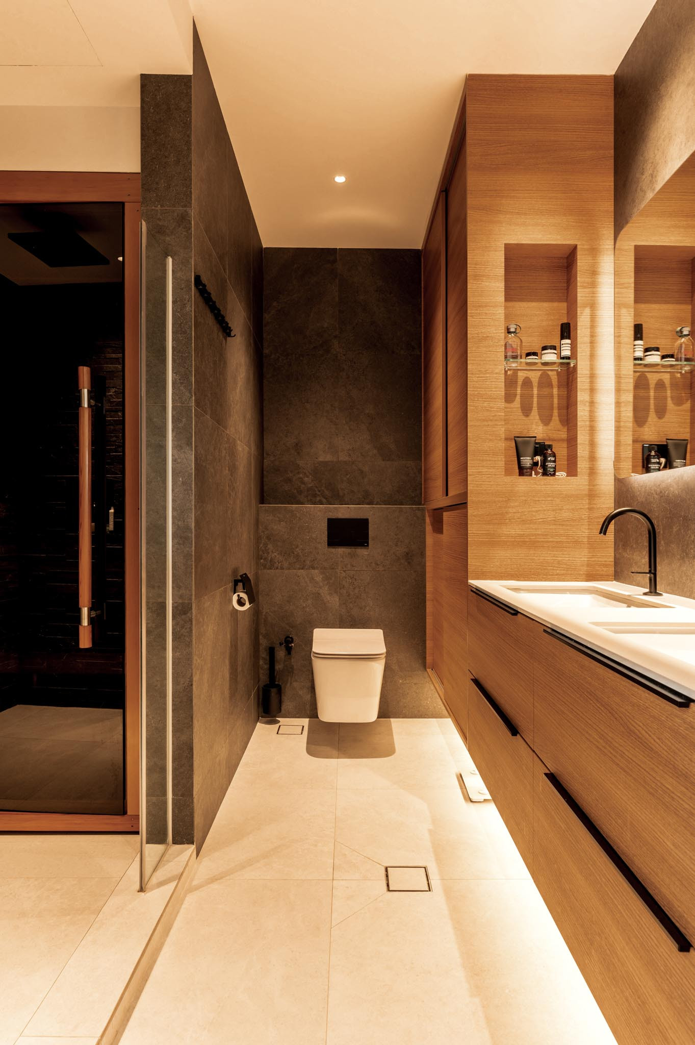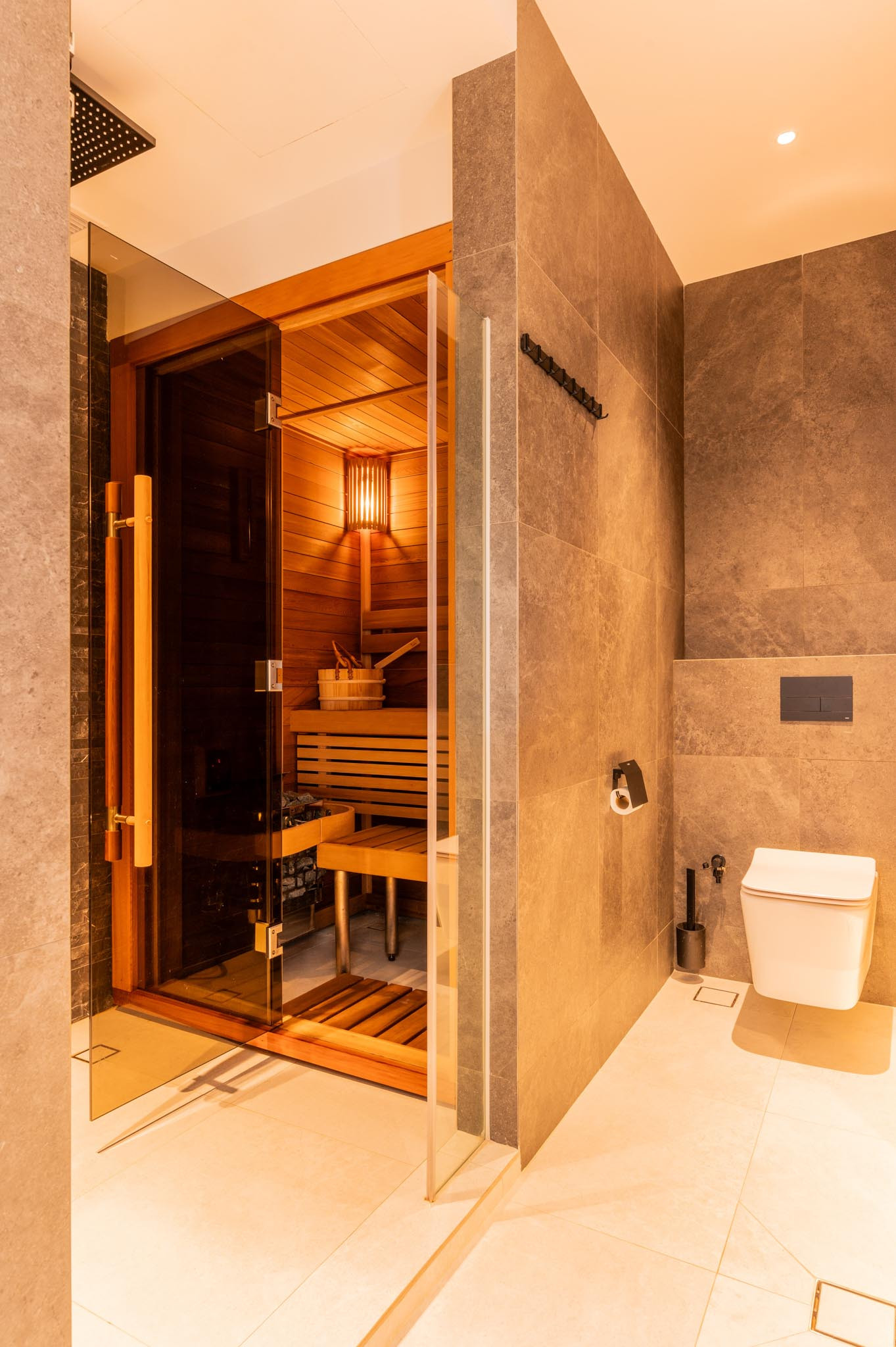 One of the standout features of the condo is the master bathroom, which goes beyond functionality to offer a luxurious retreat. The bathroom includes a sauna unit, adding an element of spa-like indulgence to the daily routine. The sauna, coupled with the clean lines and modern fixtures of the bathroom, creates a sanctuary where the family can unwind and rejuvenate.
