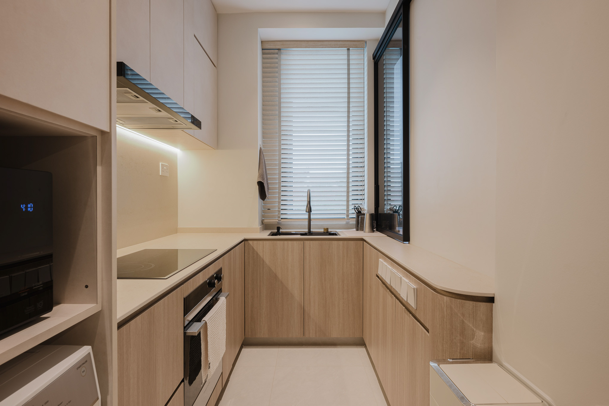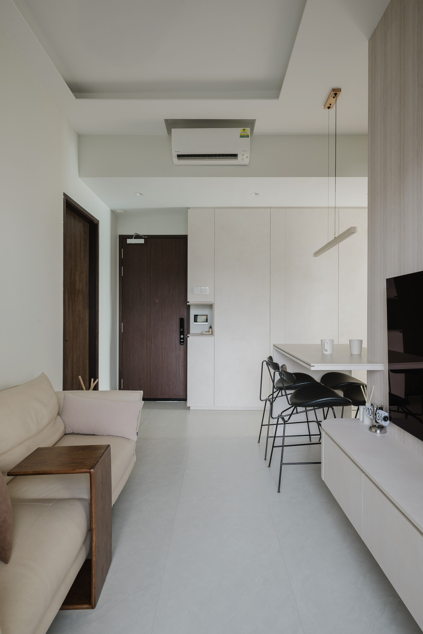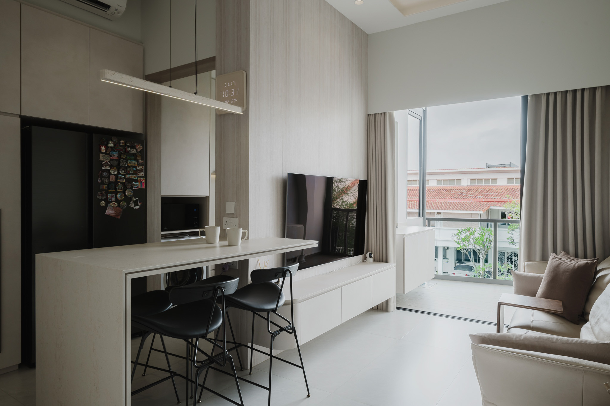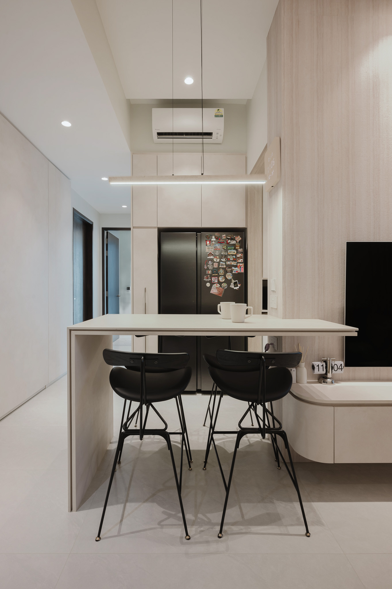 Nestled in the quiet residential pocket of Telok Kurau, this two-bedroom condominium reflects a calm, grounded lifestyle — one that values comfort, simplicity, and the beauty of everyday living. Designed for a couple who enjoy spending time at home, the space was envisioned as a serene retreat where daily routines unfold gracefully against a neutral, timeless backdrop. The design draws inspiration from a soft and natural palette of cream, beige, and nude hues. These tones form the foundation of the home’s atmosphere — warm, gentle, and effortlessly inviting. The intention was to strip away excess and allow texture, proportion, and light to take center stage. From the moment one steps in, the space feels calm and open, with natural light filtering through sheer curtains, softening every edge and corner.