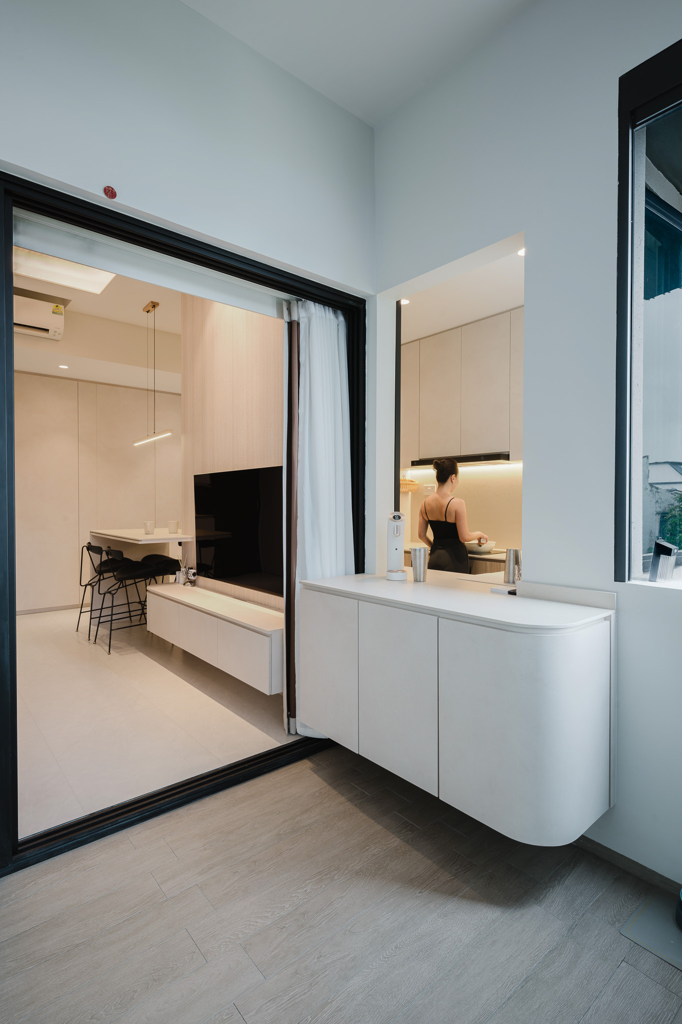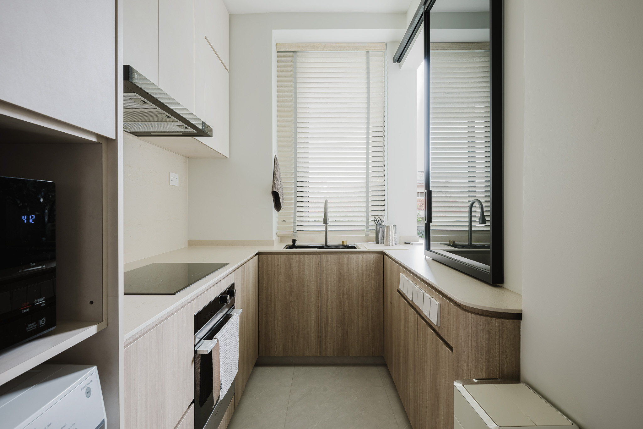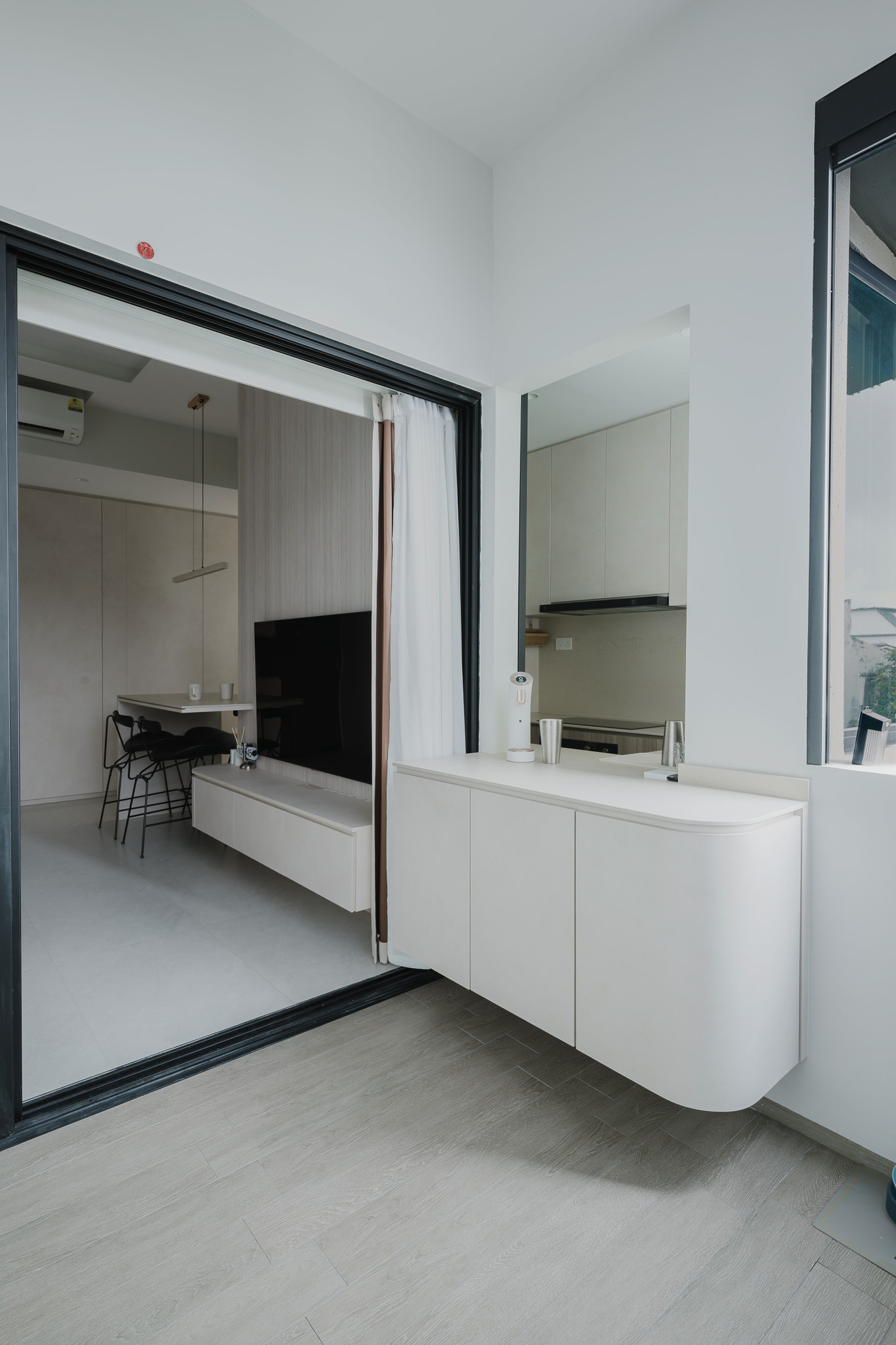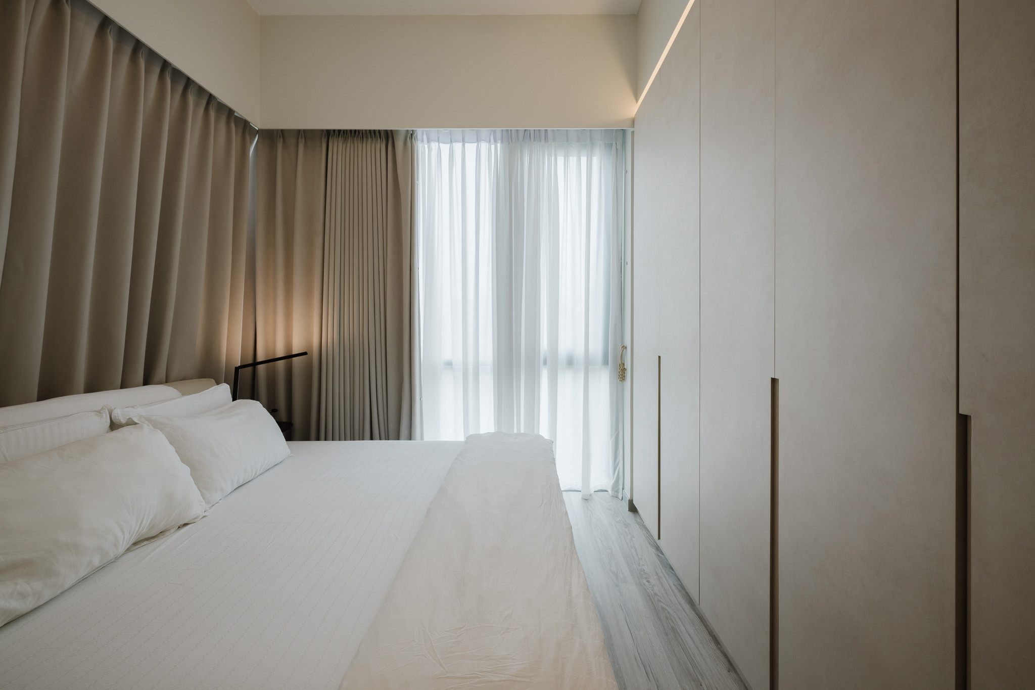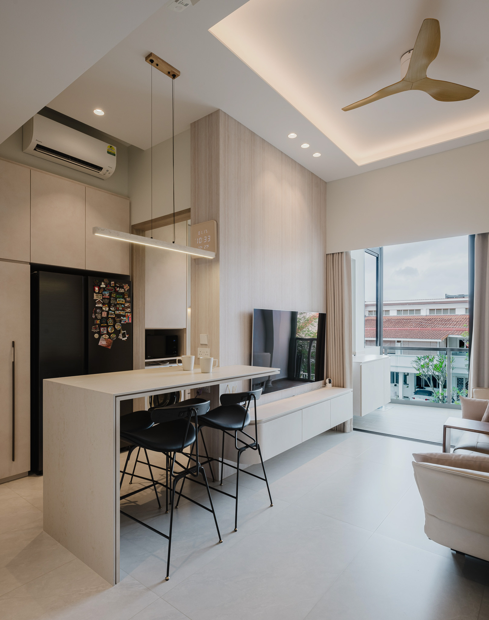 Nestled in the quiet residential pocket of Telok Kurau, this two-bedroom condominium reflects a calm, grounded lifestyle — one that values comfort, simplicity, and the beauty of everyday living. Designed for a couple who enjoy spending time at home, the space was envisioned as a serene retreat where daily routines unfold gracefully against a neutral, timeless backdrop. The design draws inspiration from a soft and natural palette of cream, beige, and nude hues. These tones form the foundation of the home’s atmosphere — warm, gentle, and effortlessly inviting. The intention was to strip away excess and allow texture, proportion, and light to take center stage. From the moment one steps in, the space feels calm and open, with natural light filtering through sheer curtains, softening every edge and corner.