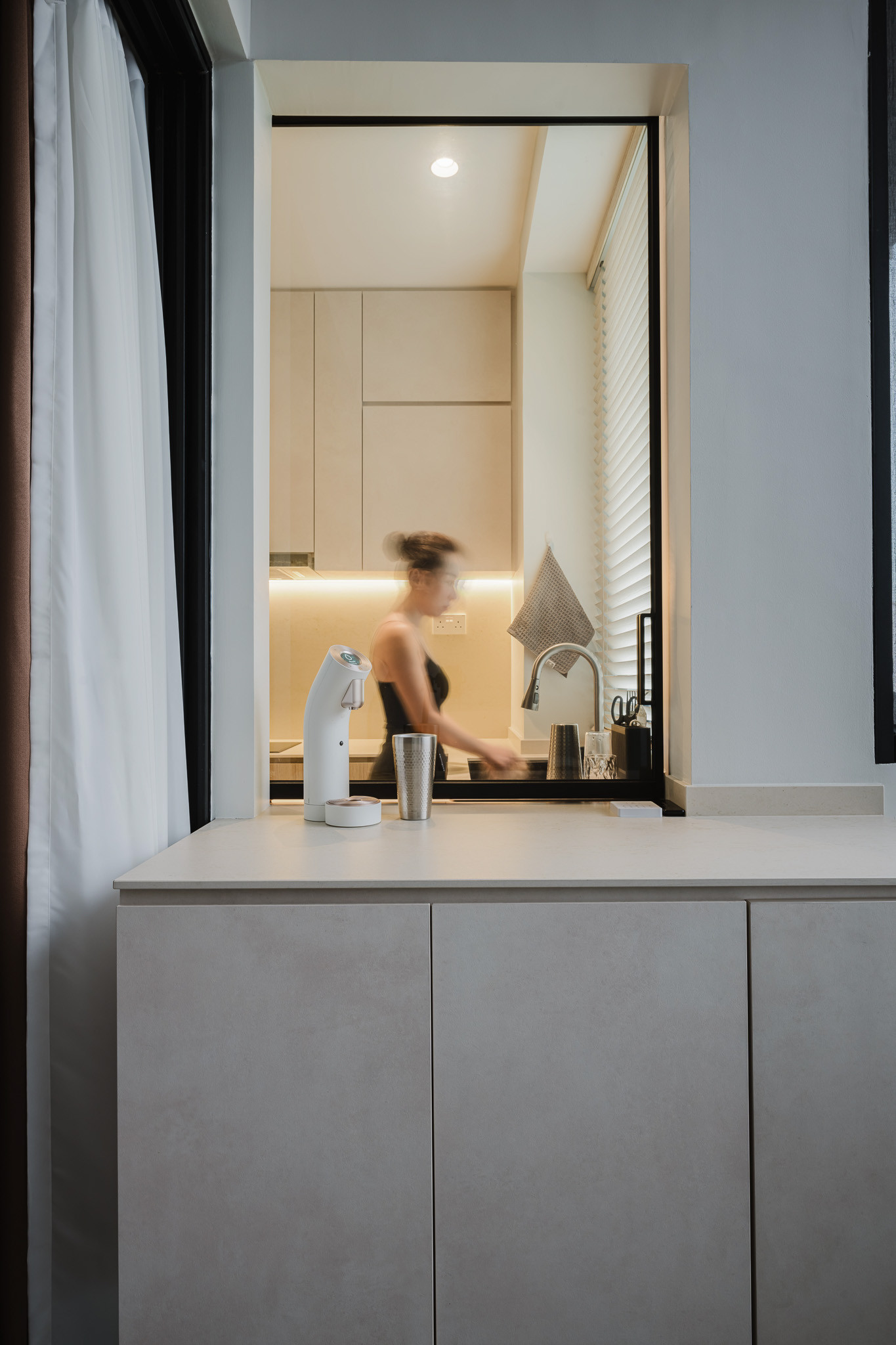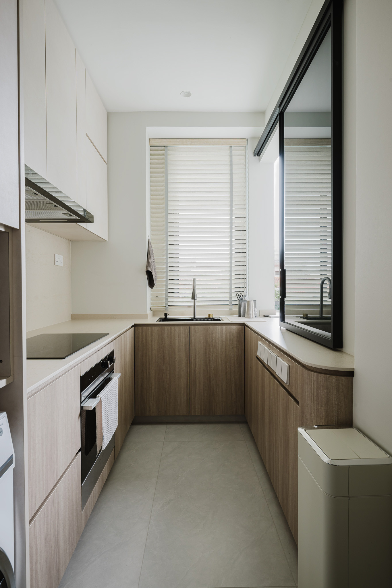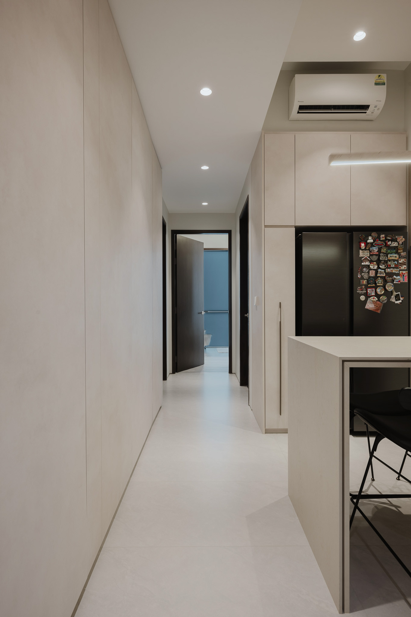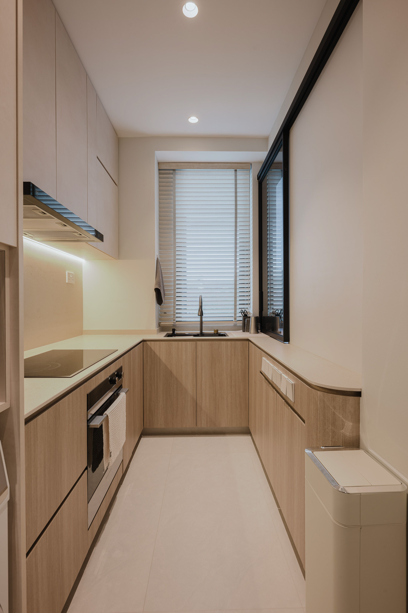 Nestled in the quiet residential pocket of Telok Kurau, this two-bedroom condominium reflects a calm, grounded lifestyle — one that values comfort, simplicity, and the beauty of everyday living. Designed for a couple who enjoy spending time at home, the space was envisioned as a serene retreat where daily routines unfold gracefully against a neutral, timeless backdrop. The design draws inspiration from a soft and natural palette of cream, beige, and nude hues. These tones form the foundation of the home’s atmosphere — warm, gentle, and effortlessly inviting. The intention was to strip away excess and allow texture, proportion, and light to take center stage. From the moment one steps in, the space feels calm and open, with natural light filtering through sheer curtains, softening every edge and corner.