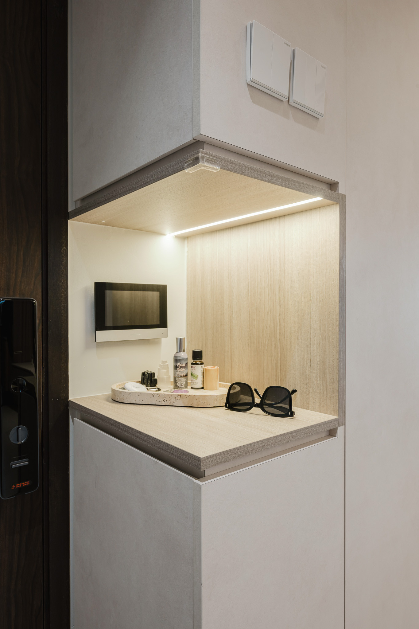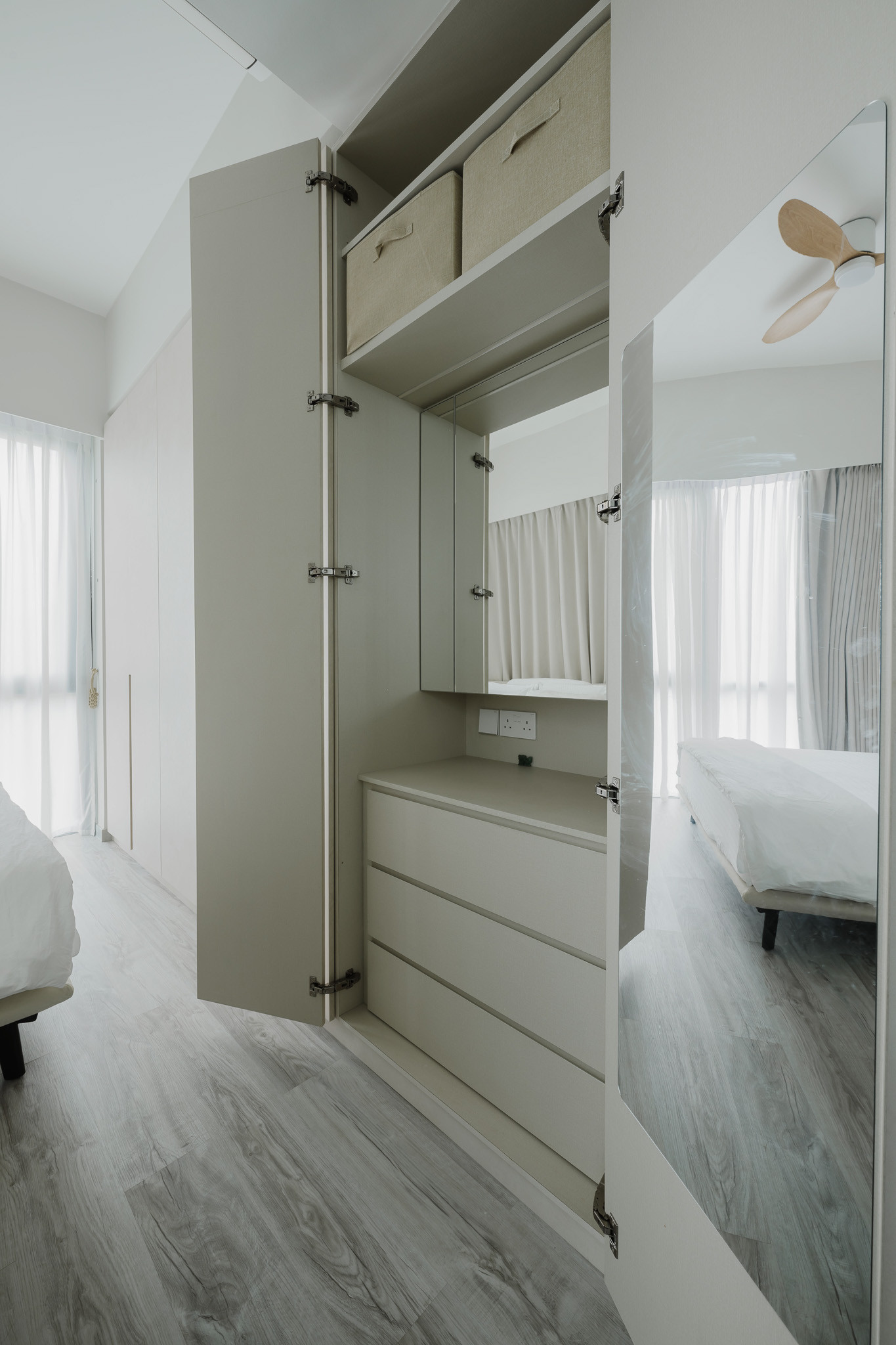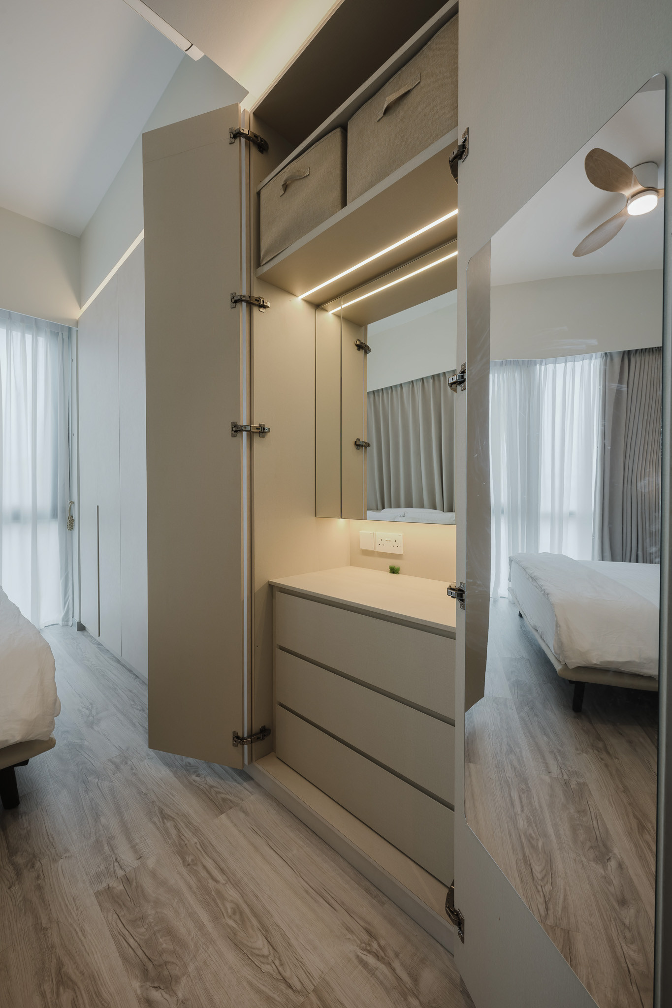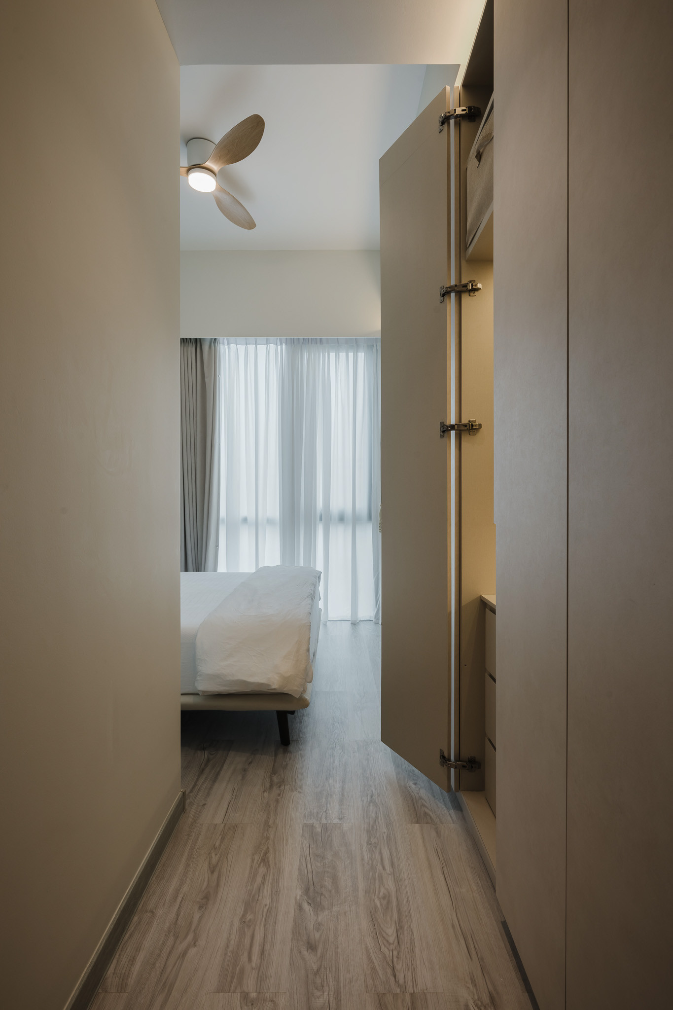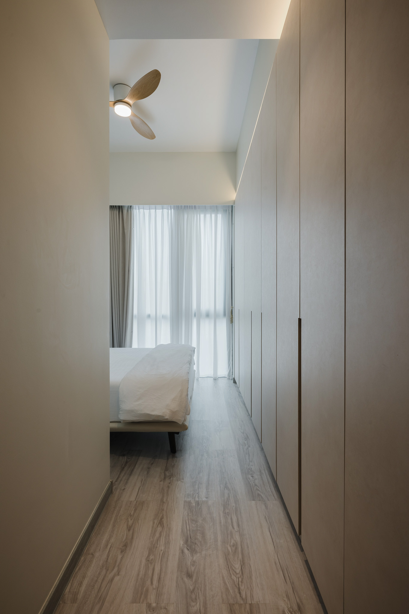 Nestled in the quiet residential pocket of Telok Kurau, this two-bedroom condominium reflects a calm, grounded lifestyle — one that values comfort, simplicity, and the beauty of everyday living. Designed for a couple who enjoy spending time at home, the space was envisioned as a serene retreat where daily routines unfold gracefully against a neutral, timeless backdrop. The design draws inspiration from a soft and natural palette of cream, beige, and nude hues. These tones form the foundation of the home’s atmosphere — warm, gentle, and effortlessly inviting. The intention was to strip away excess and allow texture, proportion, and light to take center stage. From the moment one steps in, the space feels calm and open, with natural light filtering through sheer curtains, softening every edge and corner.