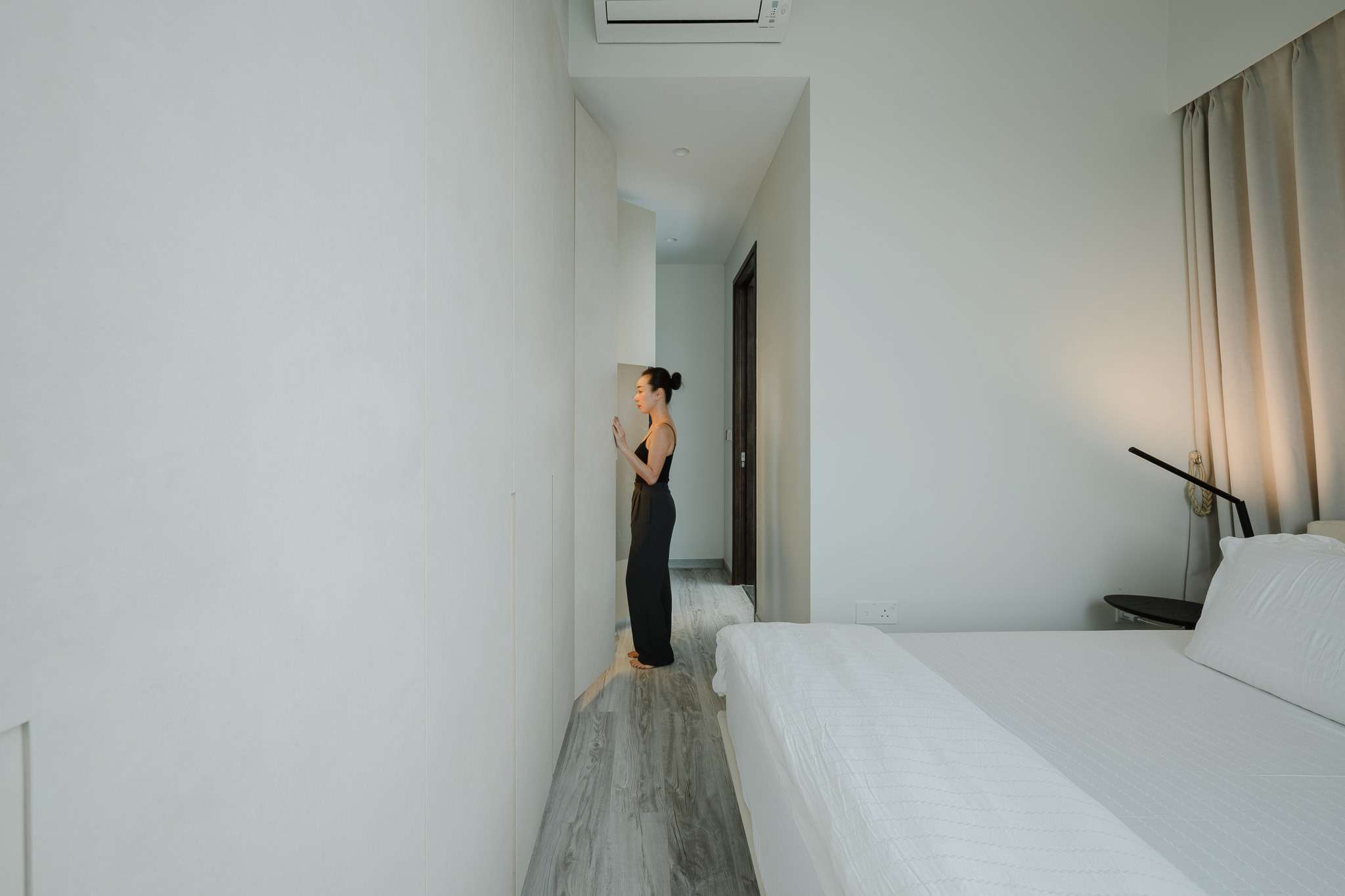 The bedrooms continue the same narrative of calm. The master room is designed as a cocoon of rest, where soft fabrics, rounded edges, and muted lighting create a gentle transition from day to night. Natural wood elements add depth to the otherwise neutral palette, while minimal decorative pieces keep the focus on comfort.