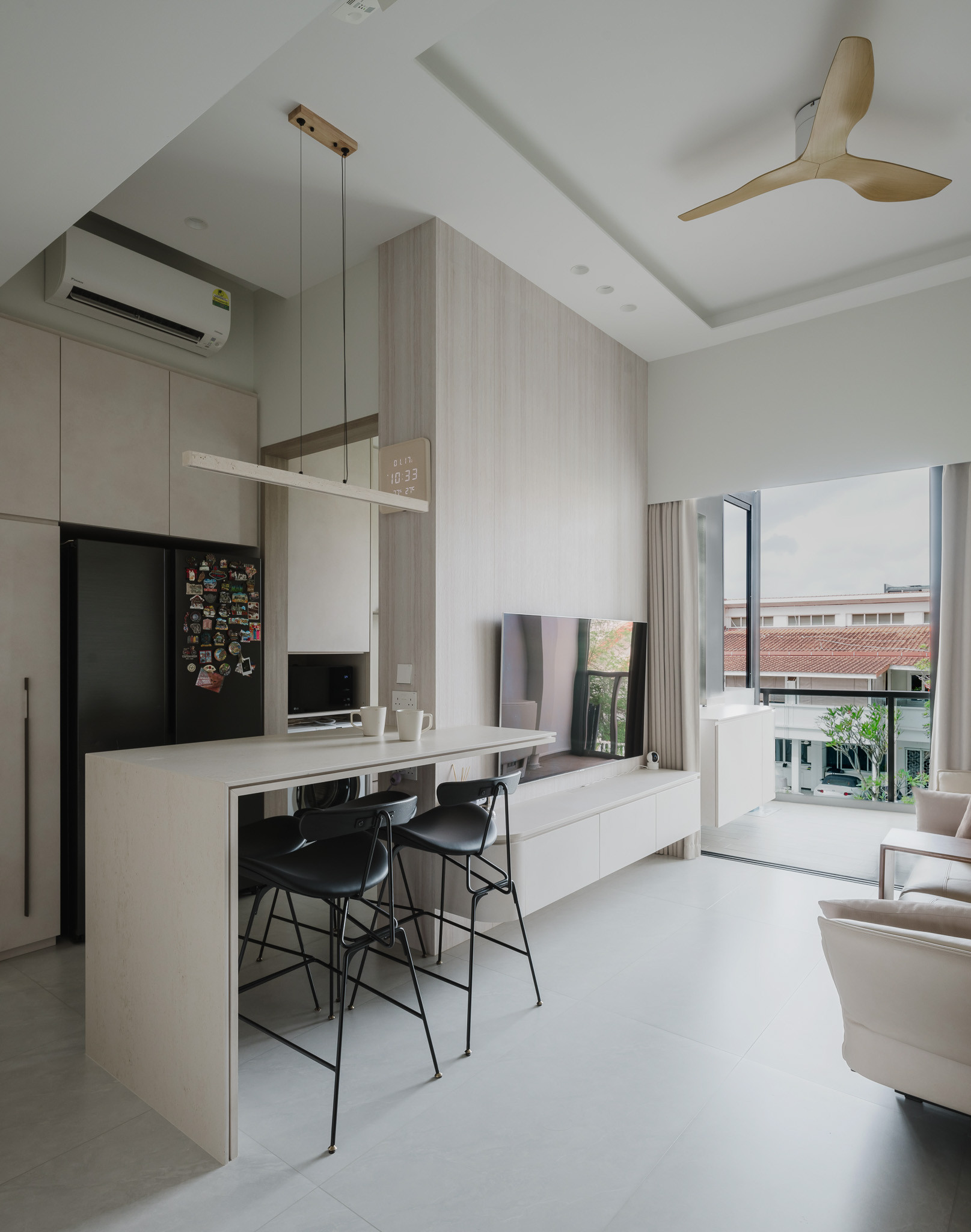 Beyond aesthetics, the design embraces the couple’s lifestyle philosophy: to enjoy life’s simple moments. Morning coffee at the dining nook, quiet evenings on the sofa, or soft music playing while they cook together — the home becomes the backdrop for these rituals. Rather than designing for show, the space was created for living, breathing, and feeling at ease.