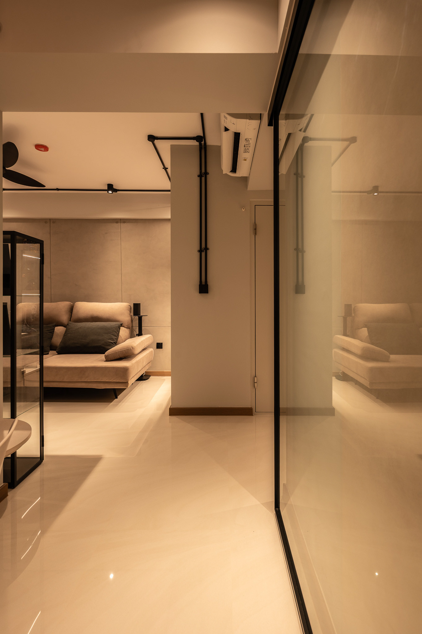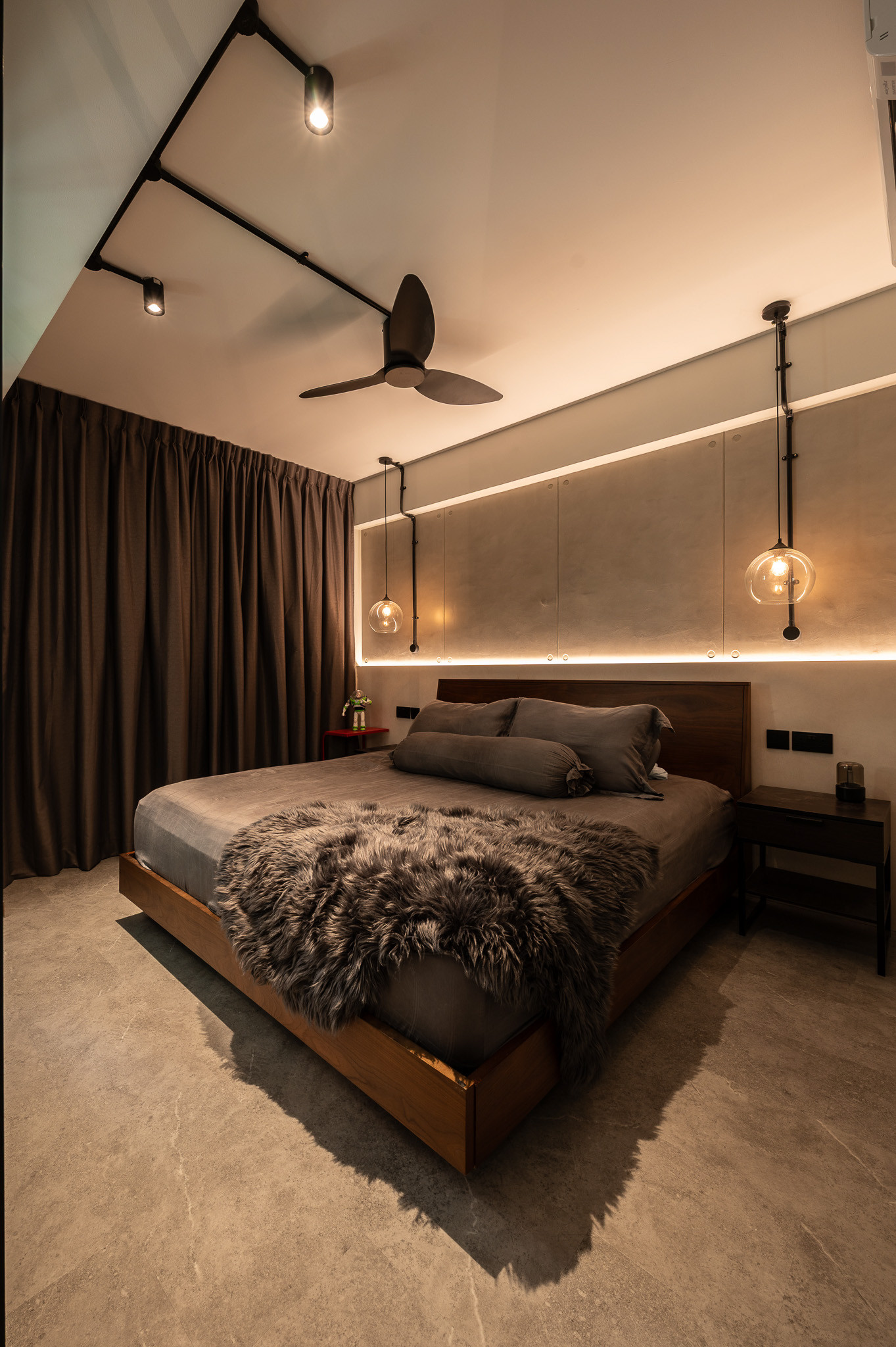 Designed for a young couple and their small dog, this home balances the raw energy of industrial design with the clean finesse of modern living. The concept takes inspiration from urban loft aesthetics—exposed textures, structured lines, and a muted palette—yet softens it with thoughtful detailing to create a warm, livable environment that suits a growing household.