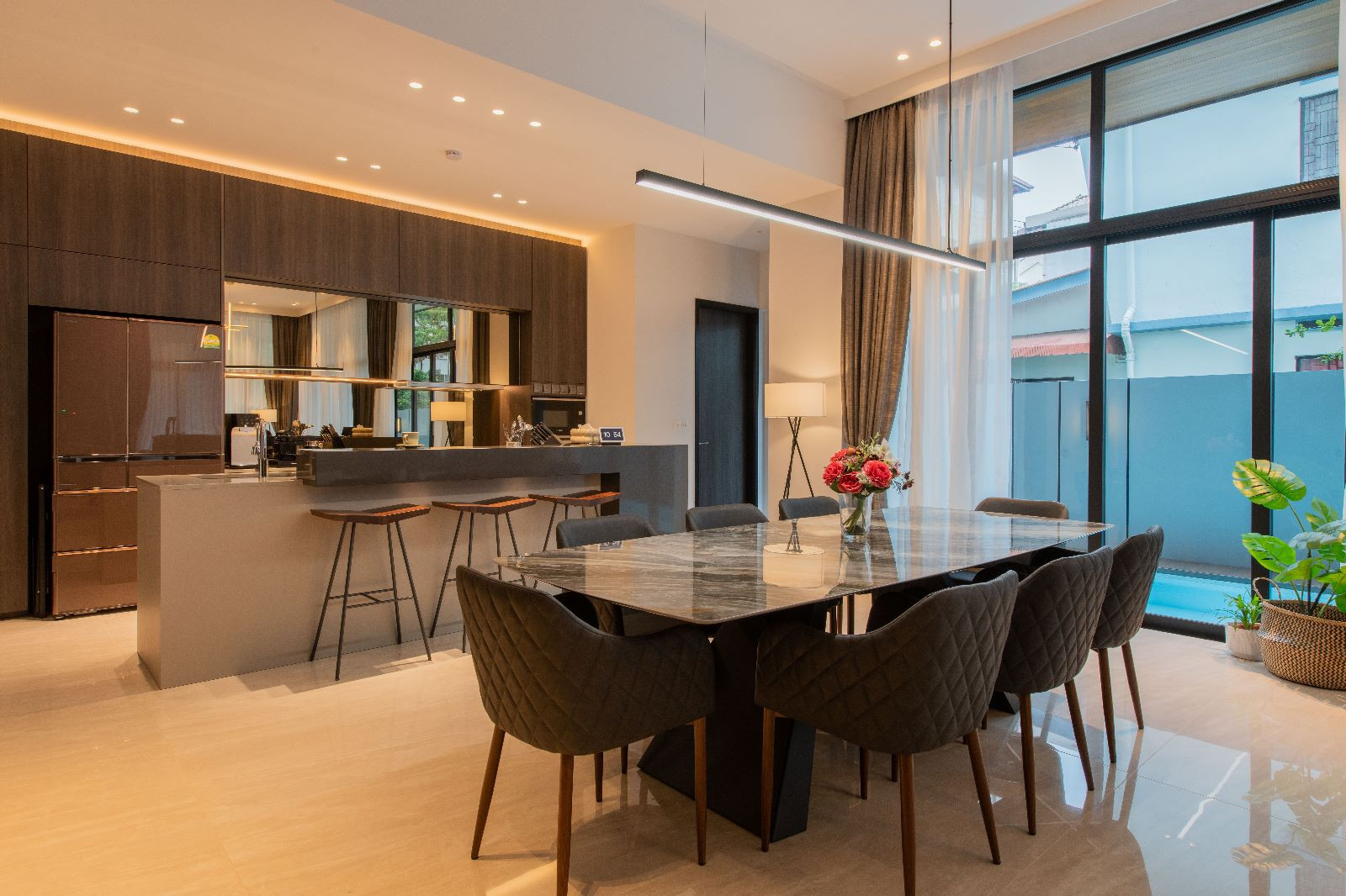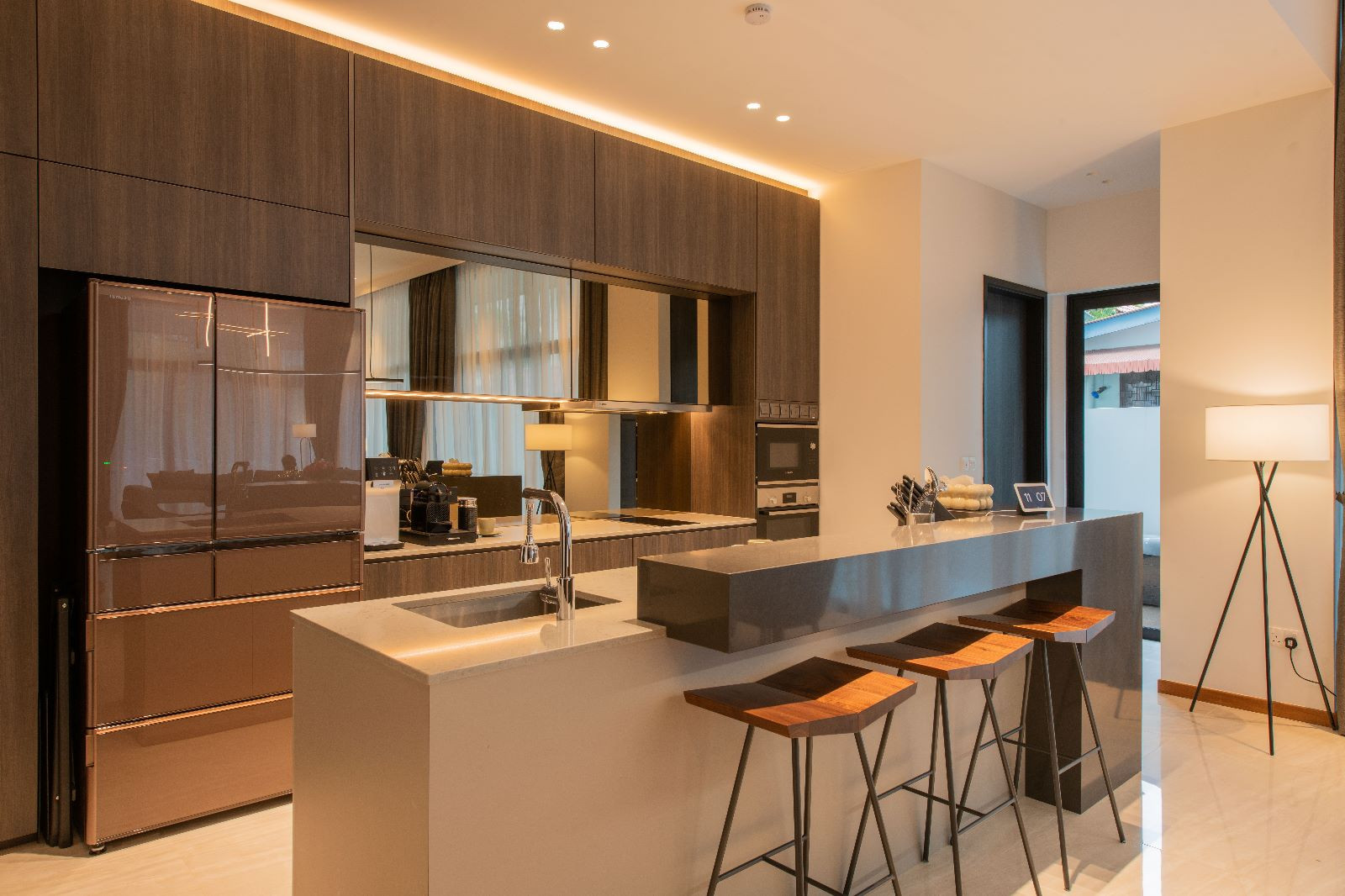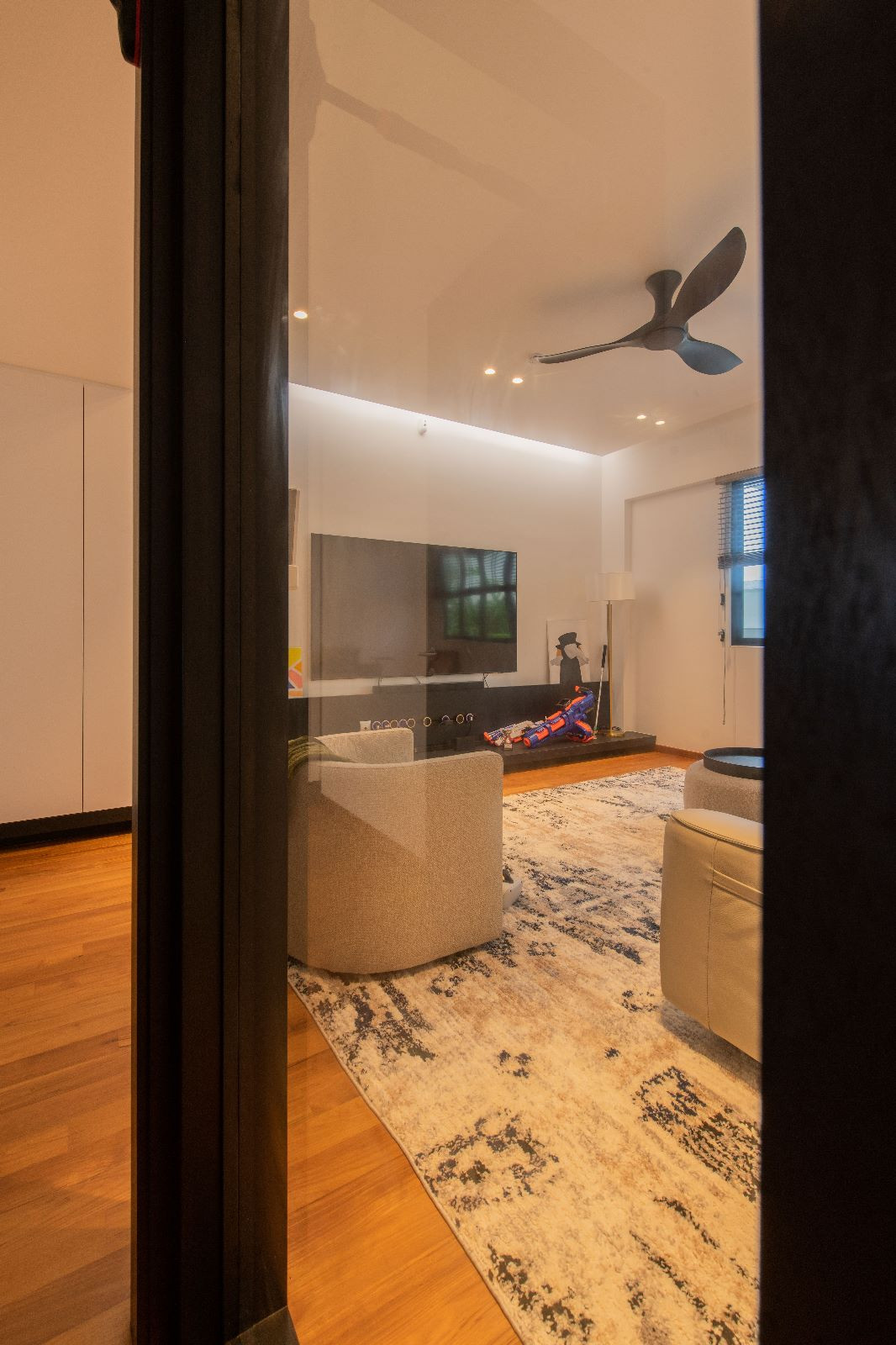 Amidst the lush greenery, there stands a sprawling semi-detached haven – a residence that blends contemporary luxury with the warmth of family bonds. The 6000 sqft abode caters to the needs of a couple, their two children, a doting grandparent, and a dedicated helper. Their story is one of humble luxury, where they find joy in the company of friends and family, valuing quality time and good conversations.