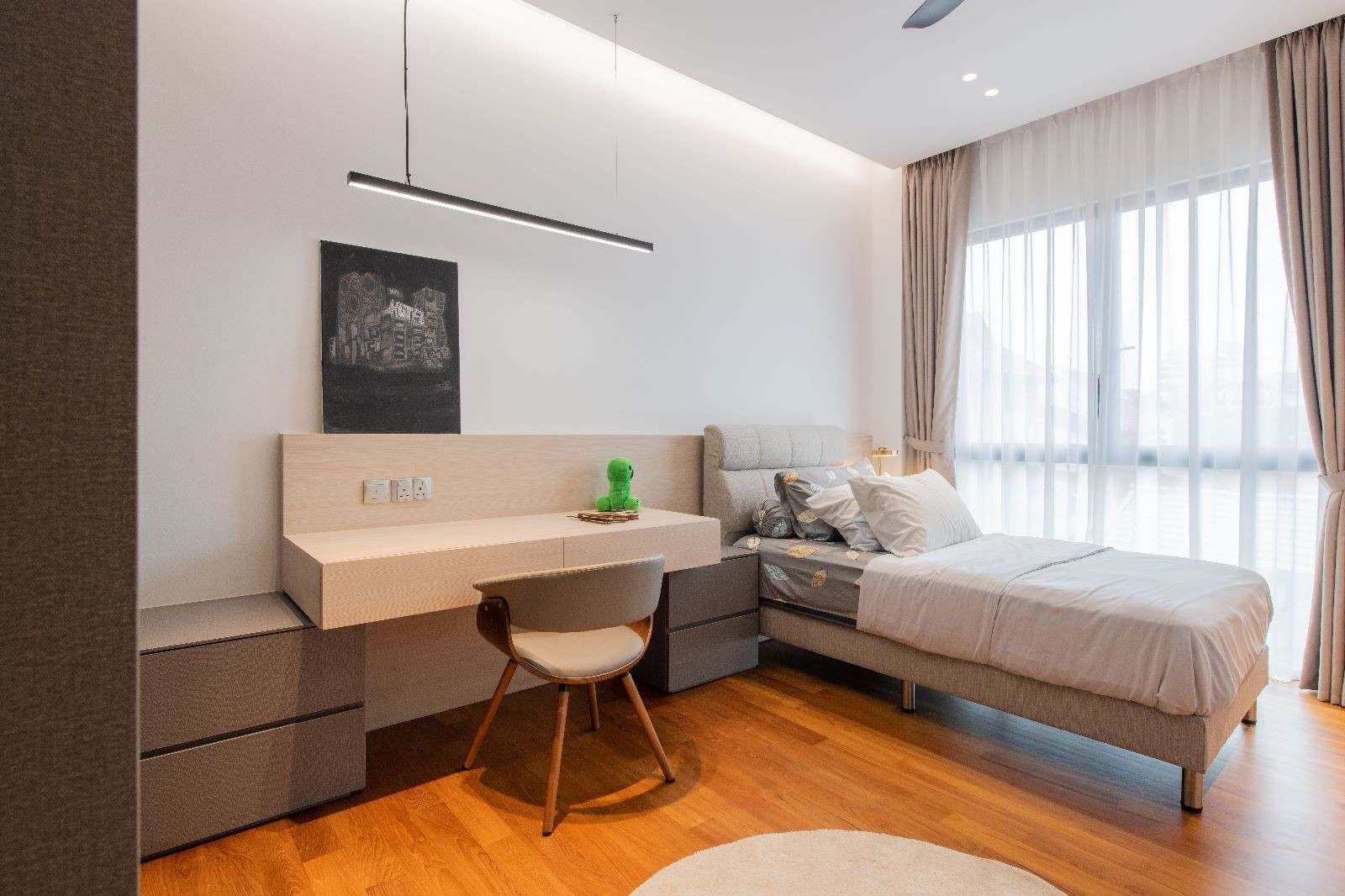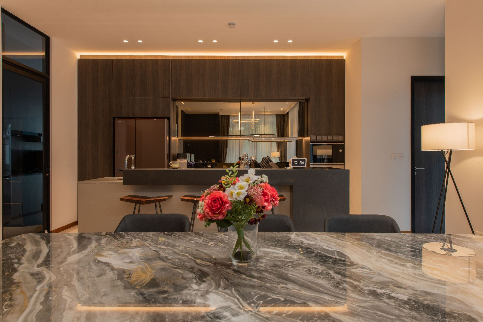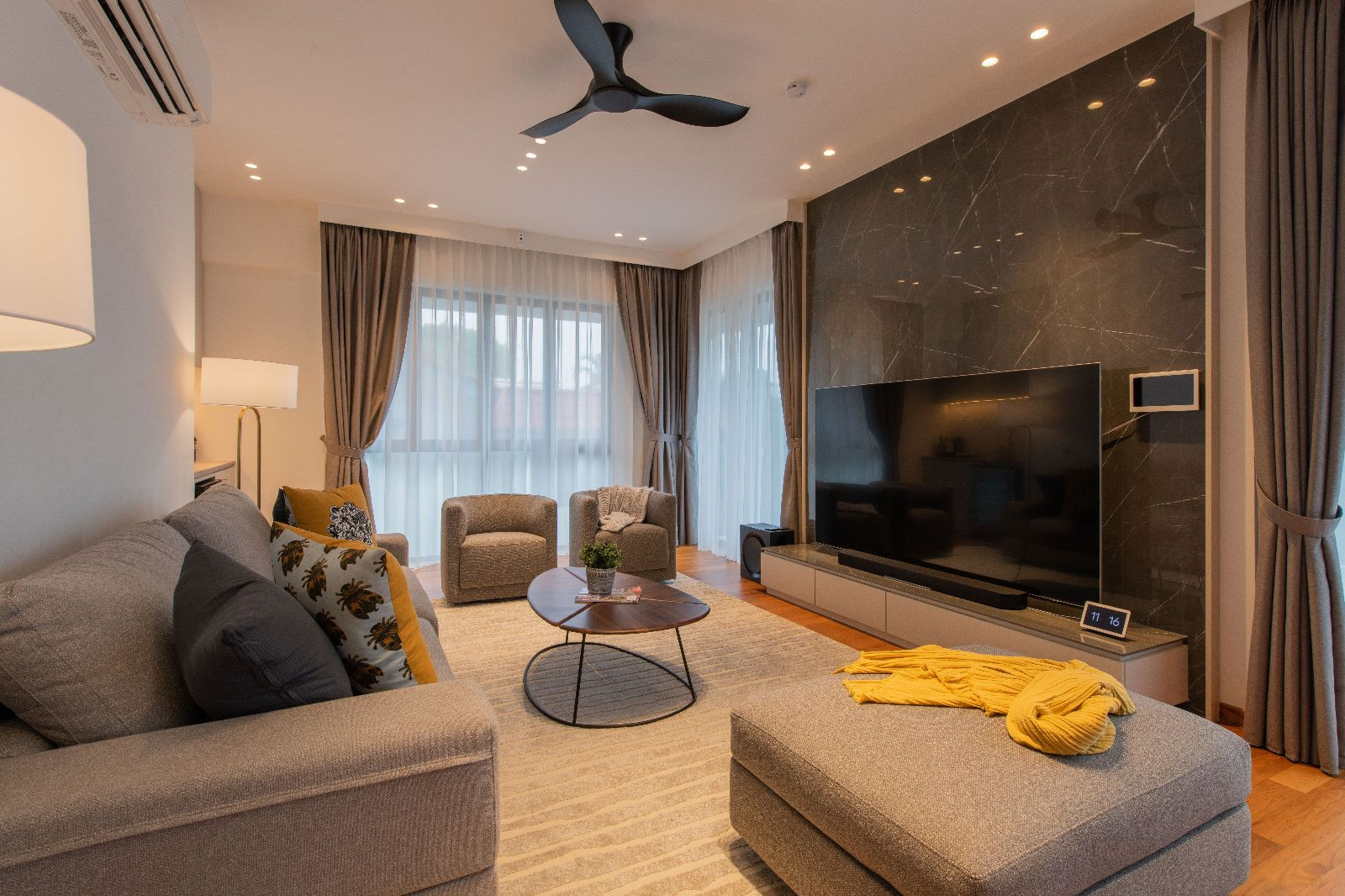 Amidst the lush greenery, there stands a sprawling semi-detached haven – a residence that blends contemporary luxury with the warmth of family bonds. The 6000 sqft abode caters to the needs of a couple, their two children, a doting grandparent, and a dedicated helper. Their story is one of humble luxury, where they find joy in the company of friends and family, valuing quality time and good conversations.